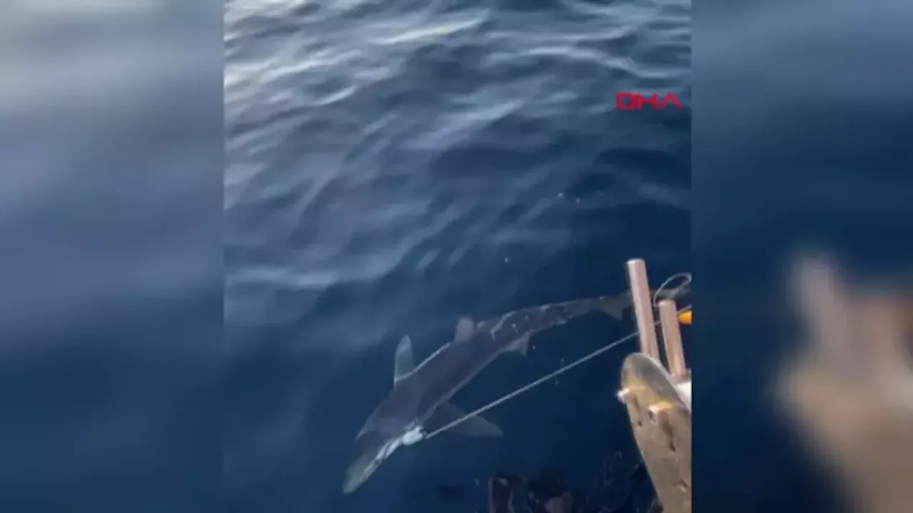 Yüzeye yaklaştıkça cinsi netleşen balığın, mavi köpek balığı (Prionace glauca) olduğunu anlayan balıkçılar, ilk anlarda şaşkınlık yaşadı. Dev köpek balığını doğal yaşamına zarar vermemek için oltadan serbest bırakan Özdemir, bu anları cep telefonu kamerasıyla kaydetti.