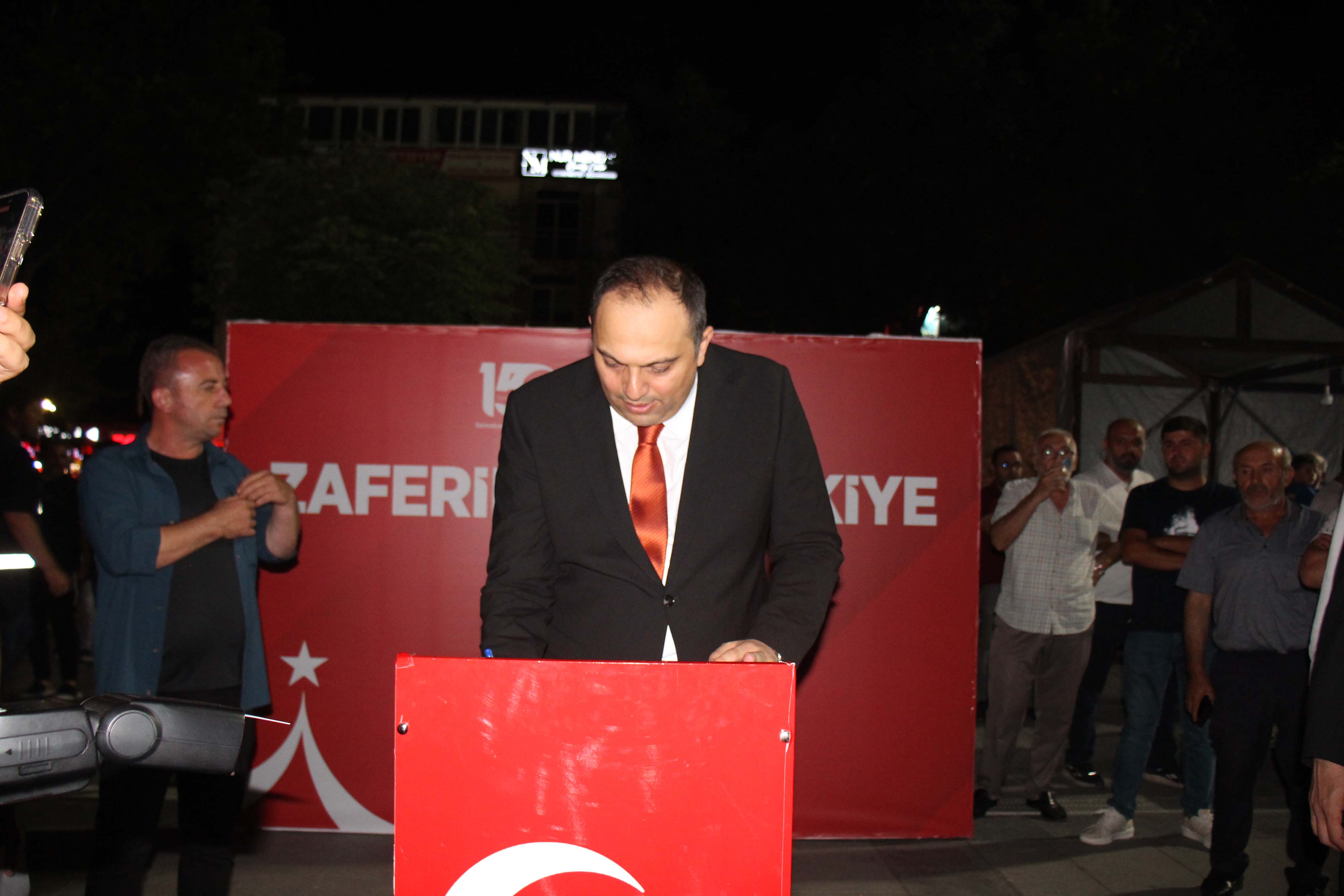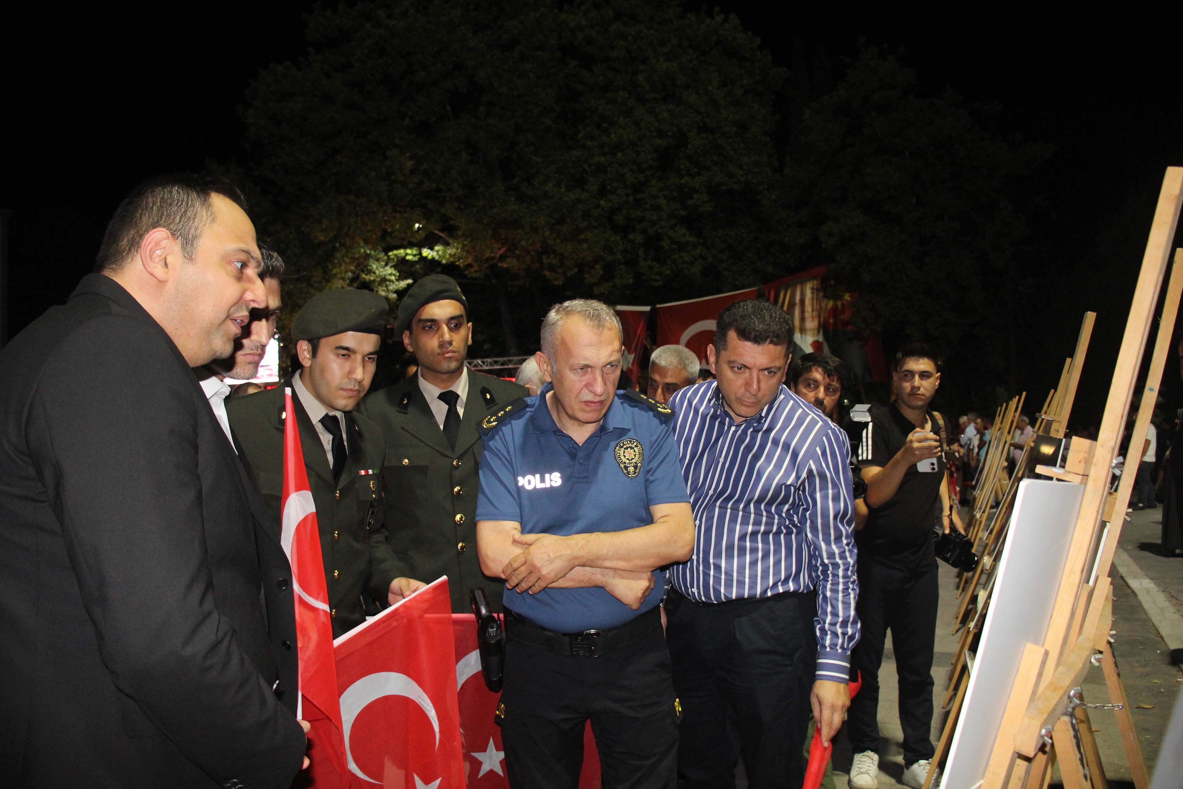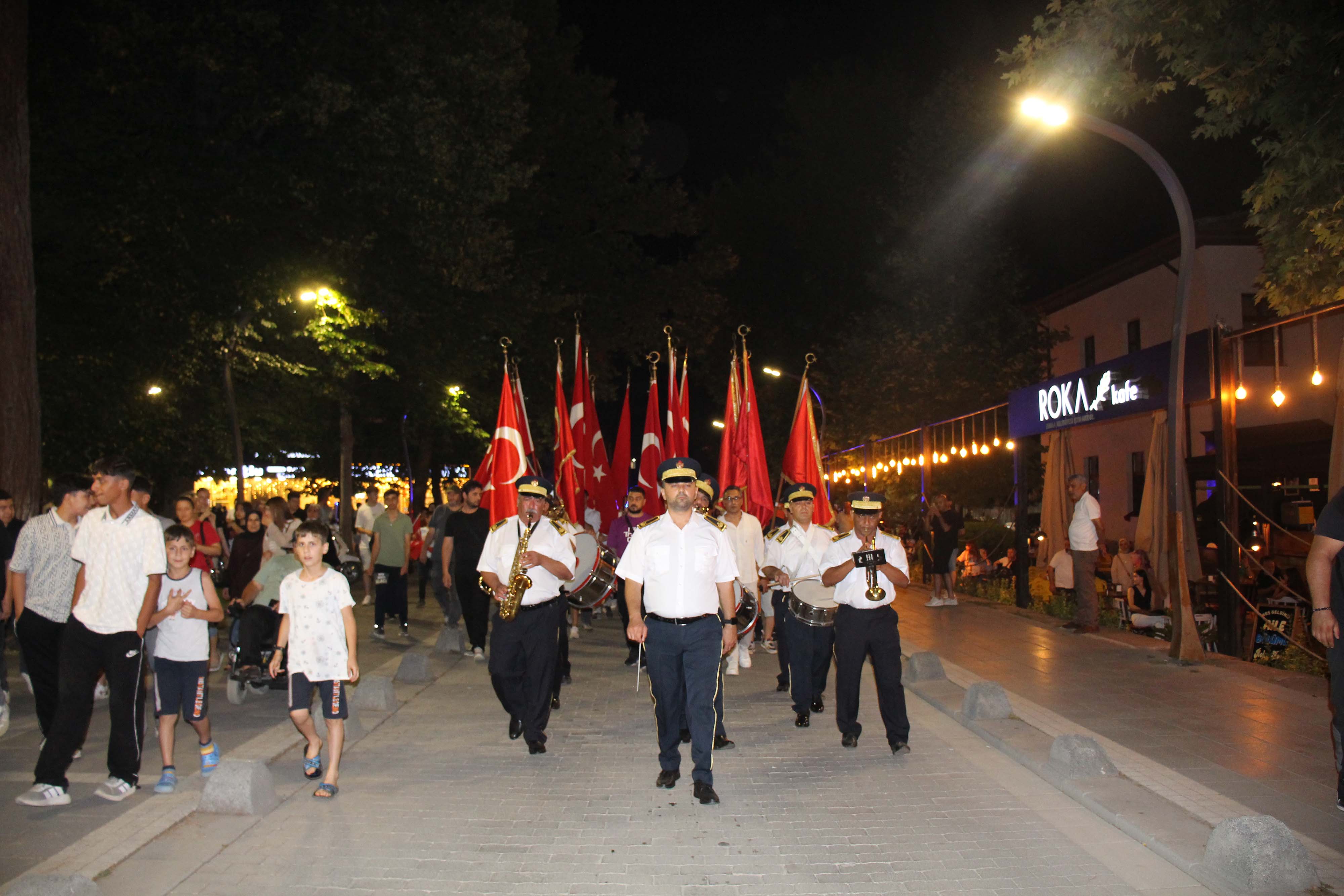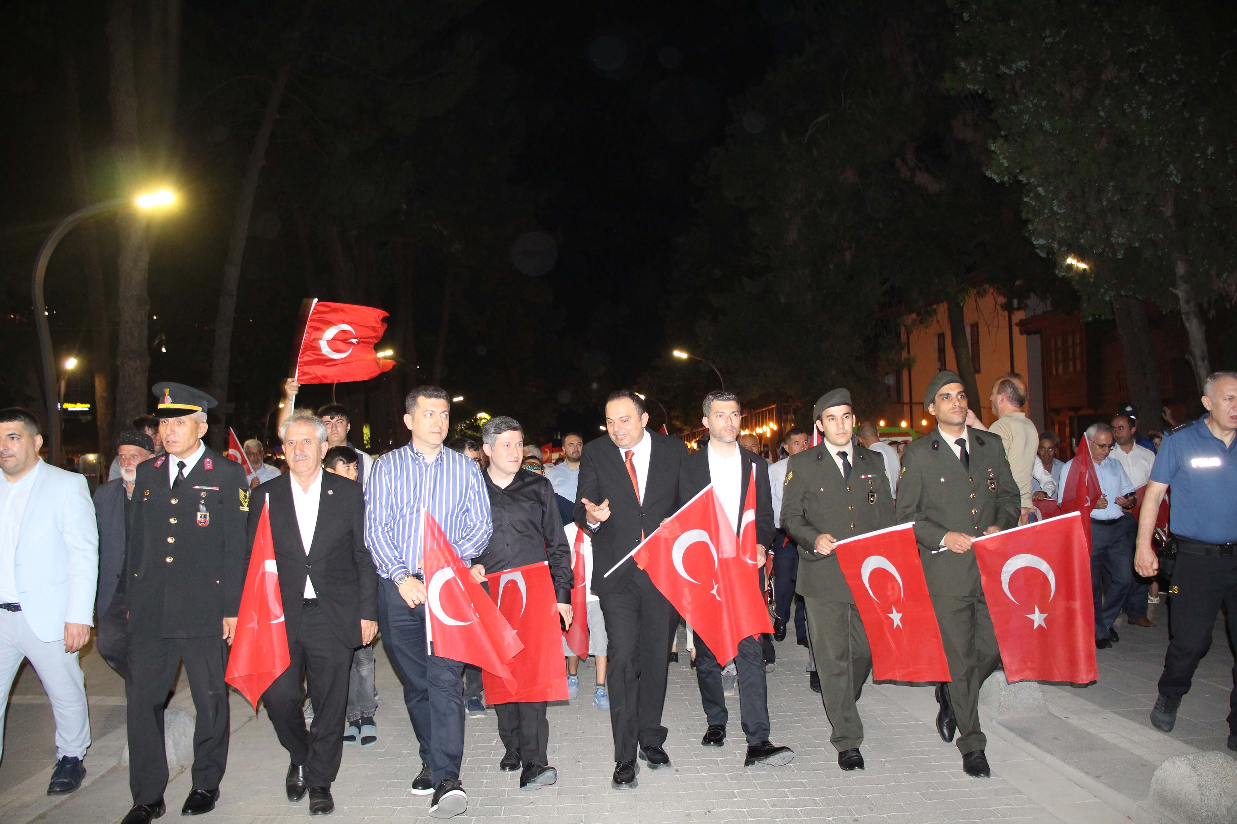 Akşam saat 21.30’da devam eden etkinlikler kapsamında, ilçe protokolü ve vatandaşlar Şehitlikten Cumhuriyet Meydanı’na yürüyerek birlik ve beraberlik mesajı verildi. Cumhuriyet Meydanı’nda açılan 15 Temmuz Milli Birlik ve Demokrasi Temalı Fotoğraf Sergisi gezildi. Katılımcılar, anı defterine duygularını yazdı.