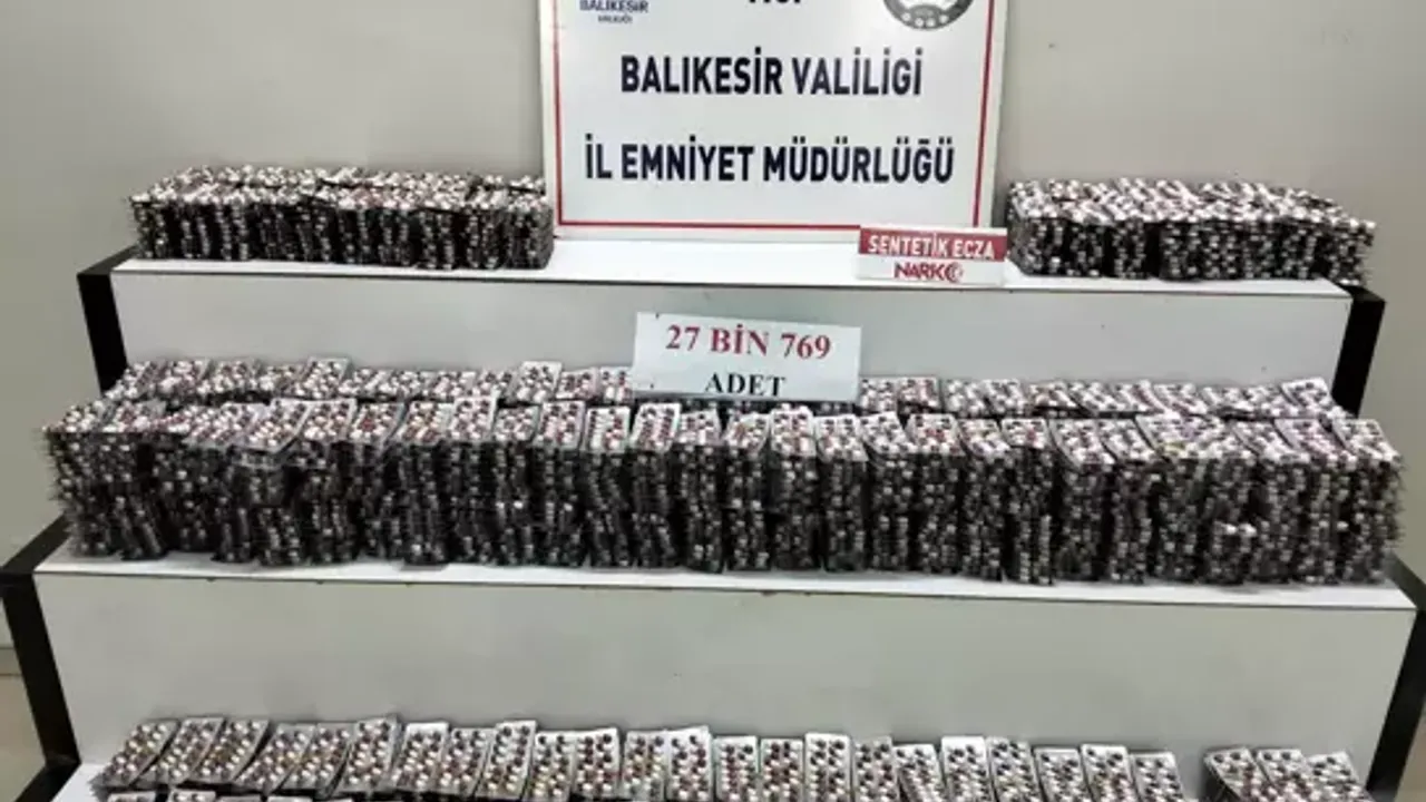 Balıkesir Emniyet Müdürlüğü Narkotik Suçlarla Mücadele Şube Müdürlüğü ve Edremit Narkotik Büro Amirliği ekipleri, uyuşturucu ticaretine yönelik yürüttükleri çalışmada plakası tespit edilen bir kamyoneti durdurdu. Araçta yapılan aramada toplam 27 bin 769 sentetik hap bulundu.