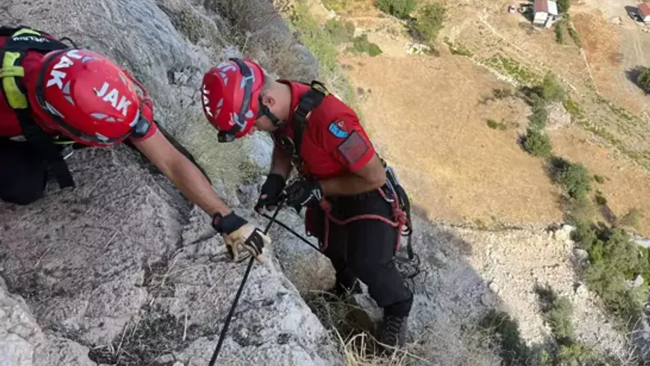 Gökçepınar Mahallesi’nde hayvanlarını otlatan bir kişi, akşam dönüşünde keçilerinden birinin eksik olduğunu fark etti. Günlerce keçisini arayan sahibi, sonunda sarp kayalıklarda mahsur kaldığını gördü. Durumu jandarmaya bildirdi.