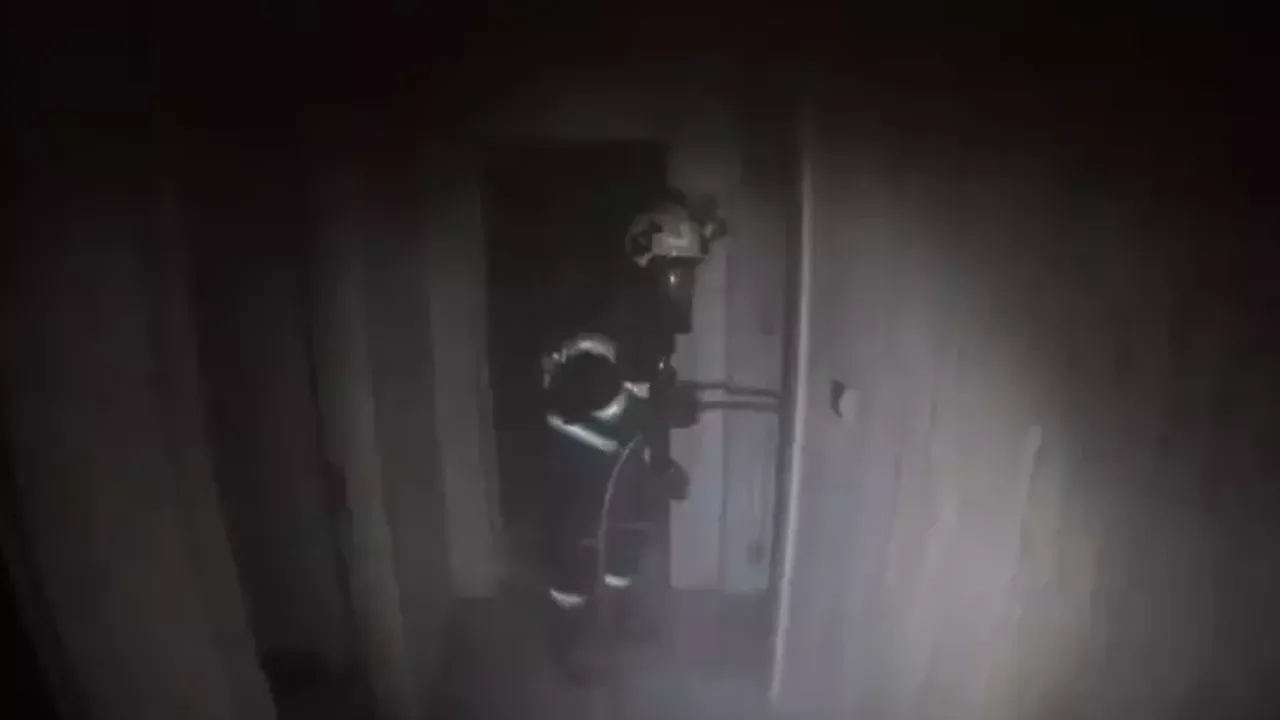 Olayda can kaybı ya da yaralanma yaşanmazken, söndürme anı itfaiye erinin kask kamerasına yansıdı.
