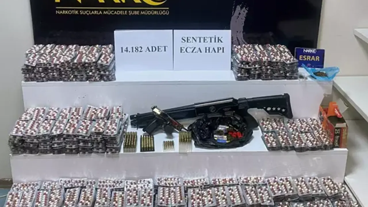Adreslerde yapılan aramalarda; reçeteye tabi 14 bin 182 uyuşturucu hap, 10 gram esrar, ruhsatsız tabanca, ruhsatsız av tüfeği ve çok sayıda mermi ele geçirildi. Gözaltına alınan B.Ö., emniyetteki sorgusunda suçlamaları reddetti.