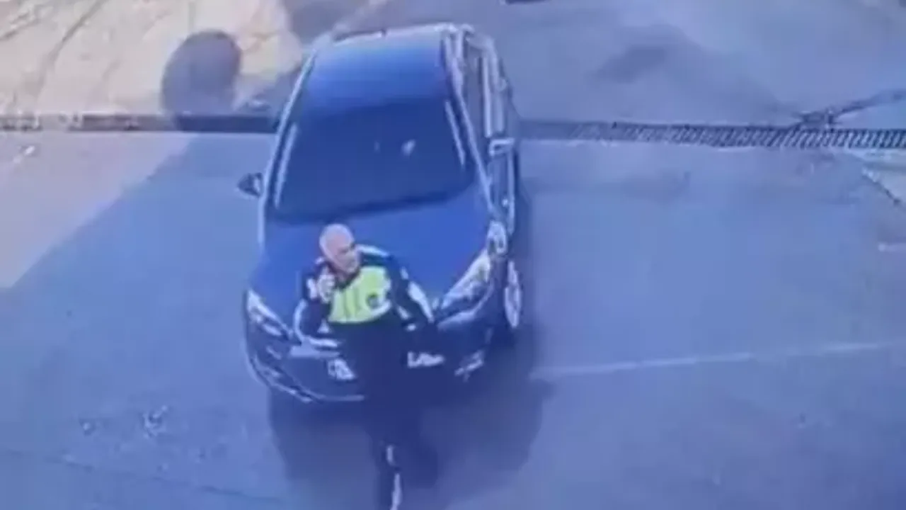 Çarpmanın etkisiyle yere düşen polis memuru yara almazken, sürücü uyarıldı ve polis şikayetçi olmadı. Kaza anı istasyonun güvenlik kamerasına yansıdı.