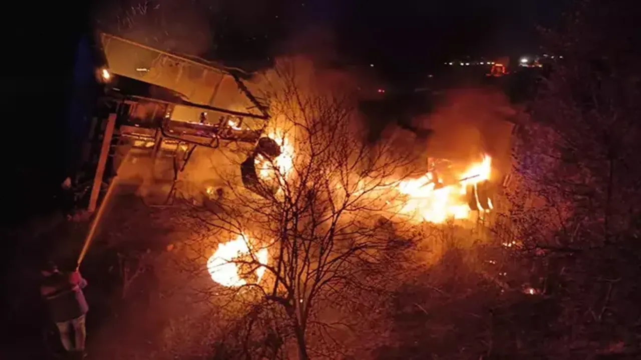 Alevleri fark eden sürücü, aracı yol kenarındaki refüje çekerek durumu ekiplere bildirdi.