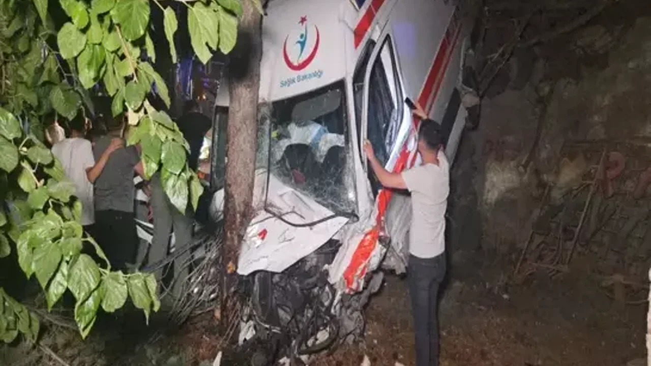 Kaza anı, çevrede seyir halinde olan bir aracın kamerasına yansıdı. Görüntülerde ambulansın çarpışmanın etkisiyle savrularak bahçeye uçtuğu anlar yer aldı.