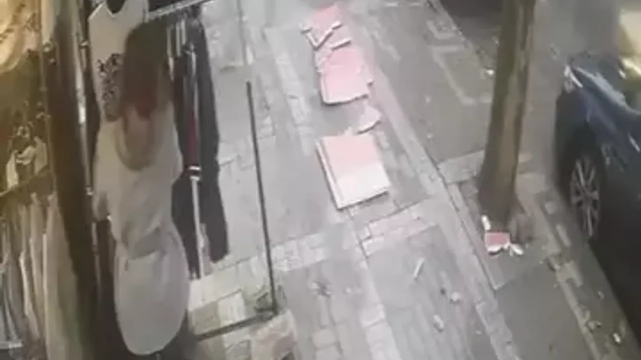 Öğle saatlerinde Mustafa Kemal Paşa Mahallesi Beyoğlu Caddesi üzerinde bulunan 4 katlı bir binanın çatısından kopan parçalar yola savruldu. O sırada cadde üzerindeki bir elbise mağazasının önünde kıyafetleri kontrol eden görevli, düşen parçaların altında kalmaktan saniyelerle kurtuldu. Yaşanan panik anları, çevrede bulunan bir iş yerinin güvenlik kamerası tarafından kaydedildi.