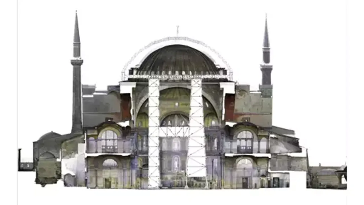 Kültür ve Turizm Bakanlığı’ndan yapılan açıklamada, restorasyonun Koruma Bölge Kurulu onayıyla yürütüldüğü ve geçici çelik çatı imalatlarının sürdüğü belirtildi. Restorasyon sürecinde, kubbe üzerindeki geçici çelik üst örtü ve iç mekan çelik platformu, kubbe pencerelerinden geçecek çelik kirişlerle birbirine bağlanacak. Bu bağlantının sağlanabilmesi için, kubbelerde özgün olmadığı tespit edilen mermer pencerelerin itinalı bir şekilde sökümüne başlandı.