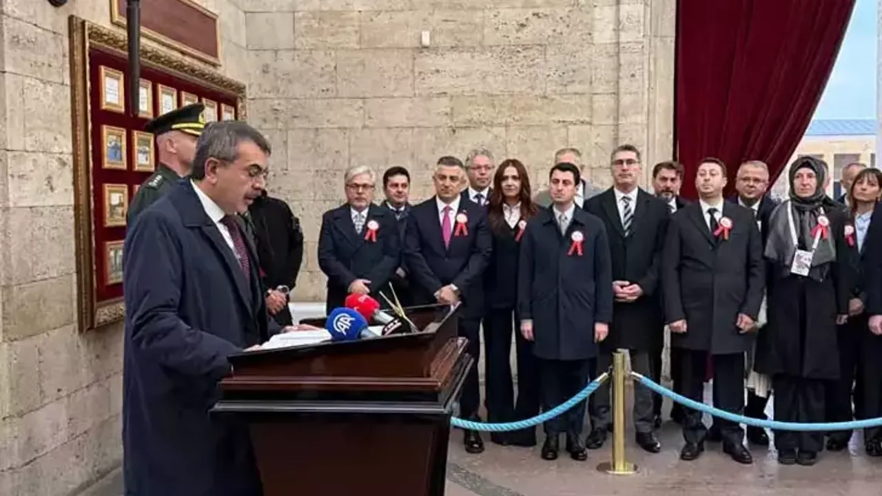 "Aziz Atatürk, Millet Mektepleri Başöğretmenliğinizi kabul edişinizin 97’nci yıl dönümünde öğretmenlerimizi temsilen huzurunuzda bulunmanın onurunu taşıyorum. İlk Maarif Kongresi’ndeki milli irfan ve milli müdafaa anlayışınız bugün de yolumuzu aydınlatıyor. Eğitimde çizdiğiniz ufuk, Cumhuriyetimizin ikinci yüzyılında ilim ve hikmetle donanmış nesiller yetiştirme hedefimize ışık tutuyor. Öğretmenlerimizin mesleki itibarını yükseltmek, haklarını geliştirmek ve eğitimde fırsat eşitliğini güçlendirmek için kararlılıkla çalışıyoruz. Her çocuğumuzun nitelikli eğitime erişimi, bu milletin ortak geleceğine bağlılığımızın göstergesidir. Cumhuriyetimizin ideallerini yaşatma kararlılığımız baki kalacaktır. Ruhunuz şad olsun."