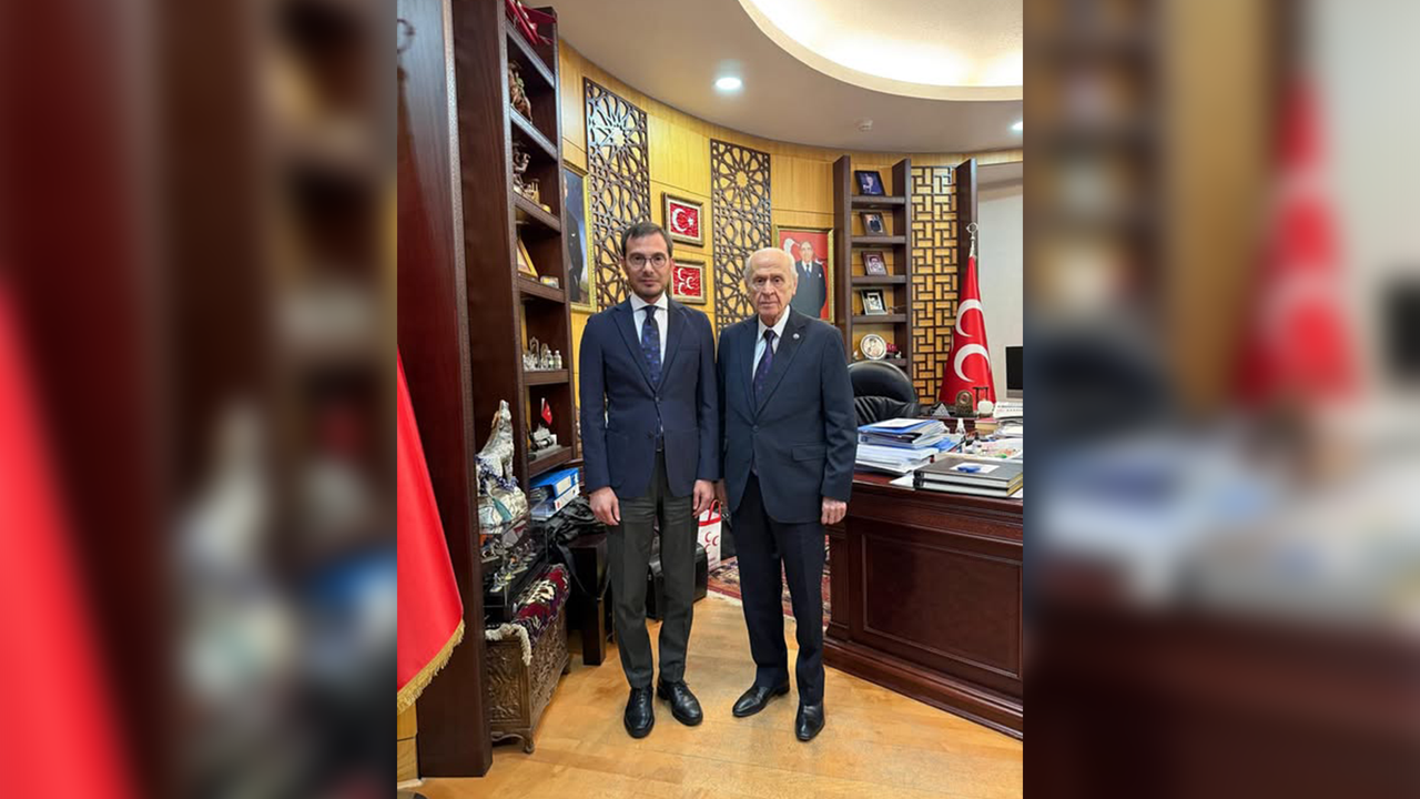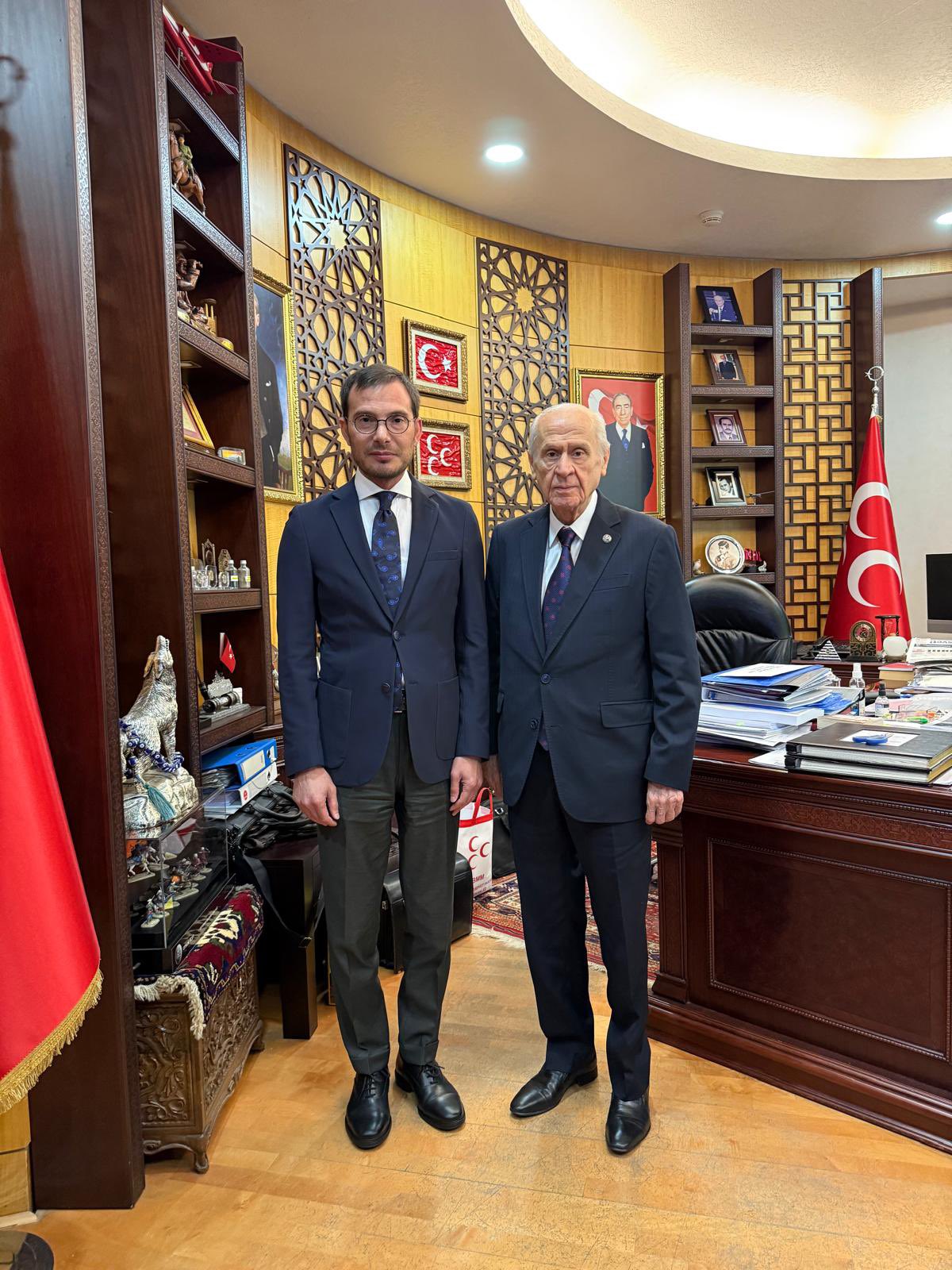 "Türk ve Türkiye Yüzyılı’nın Mimarı, Bilge Liderimiz Sayın Dr. Devlet Bahçeli Beyefendi’yi Genel Merkezimizde ziyaret ettim. Sayın Genel Başkanımıza hüsnükabullerinden dolayı teşekkür ederim. Rabbim sağlık, sıhhat, afiyet versin."