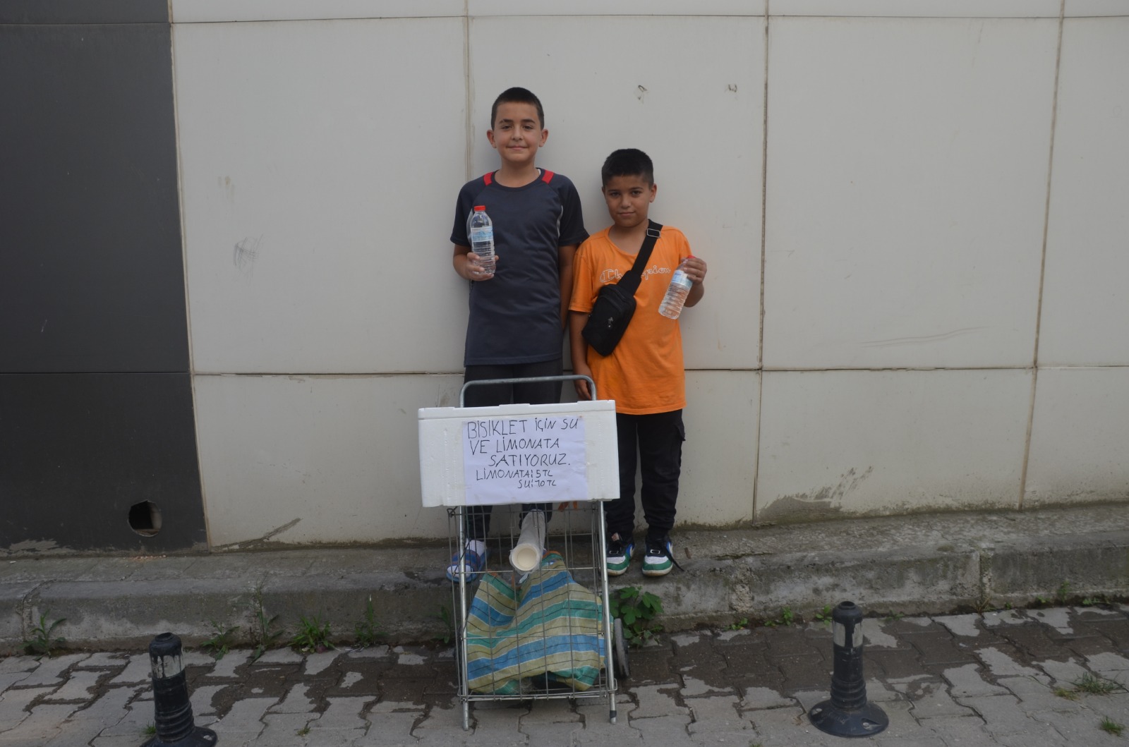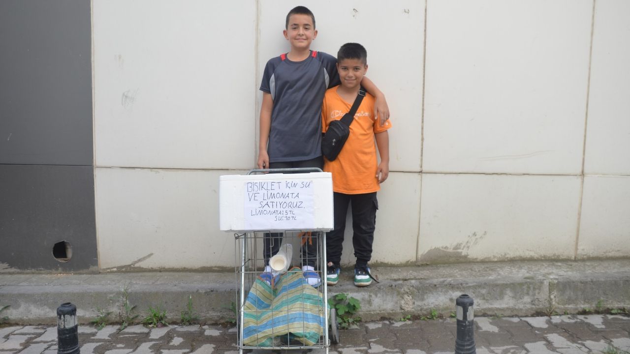 Bisiklet almak için ailelerinden destek istemek yerine, kendi emekleriyle bu hedefe ulaşmak isteyen minik girişimciler, hazırladıkları limonatayı 5 TL, şişe suyu ise 10 TL fiyatla satıyor. Yalnızca para değil; azim, sorumluluk ve girişimcilik duygularını da küçük yaşta kazanıyorlar.