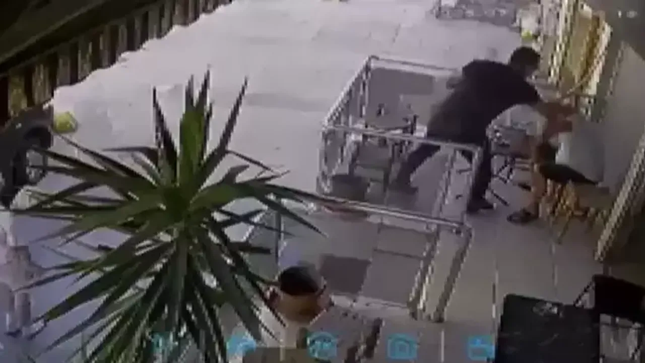 Bir kişinin kahvehaneye gelişi, masanın üzerindeki cep telefonunu alması ve ardından silah kabzasıyla gerçekleştirdiği saldırı, iş yerinin güvenlik kamerasına saniye saniye yansıdı.
