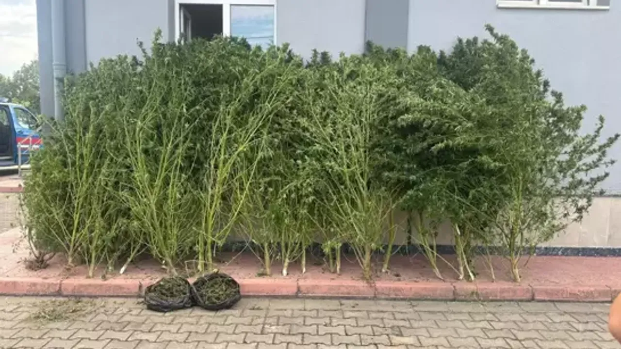 Operasyonda çok sayıda kenevir bitkisi ile esrar maddesi ele geçirildi.