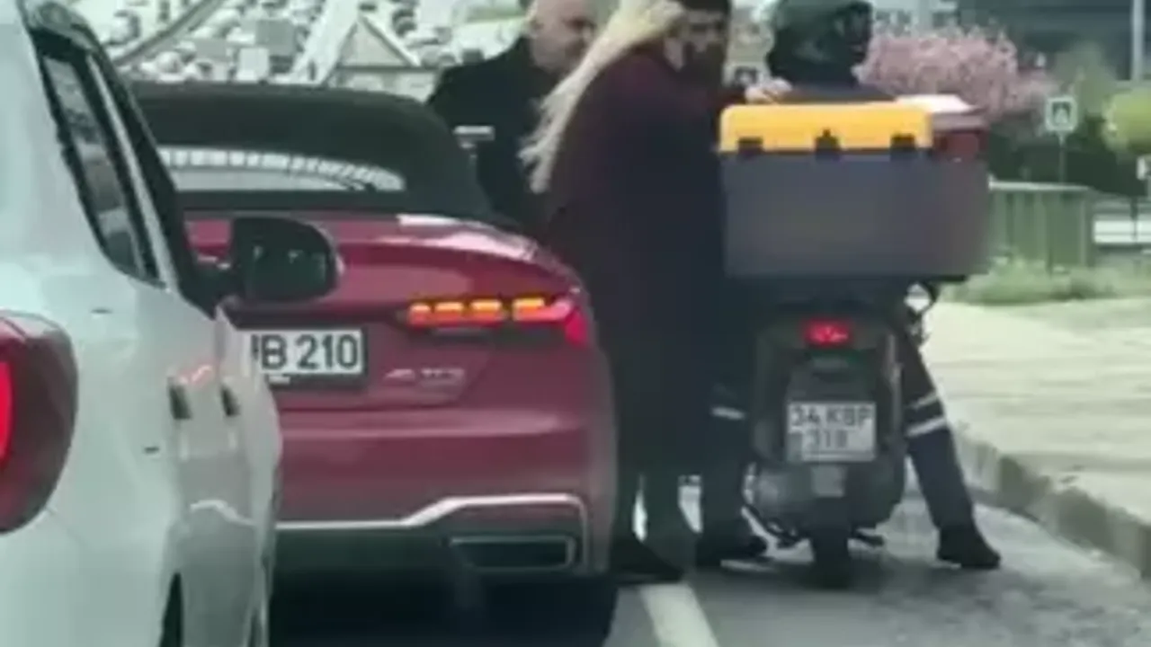 Aracından inen sürücü, belinden çıkardığı silahı motokuryeye yöneltti. Olayın daha da büyümesini çevredekiler engelledi. Araya giren vatandaşların müdahalesi sonrası silah doğrultan şahıs olay yerinden uzaklaştı.