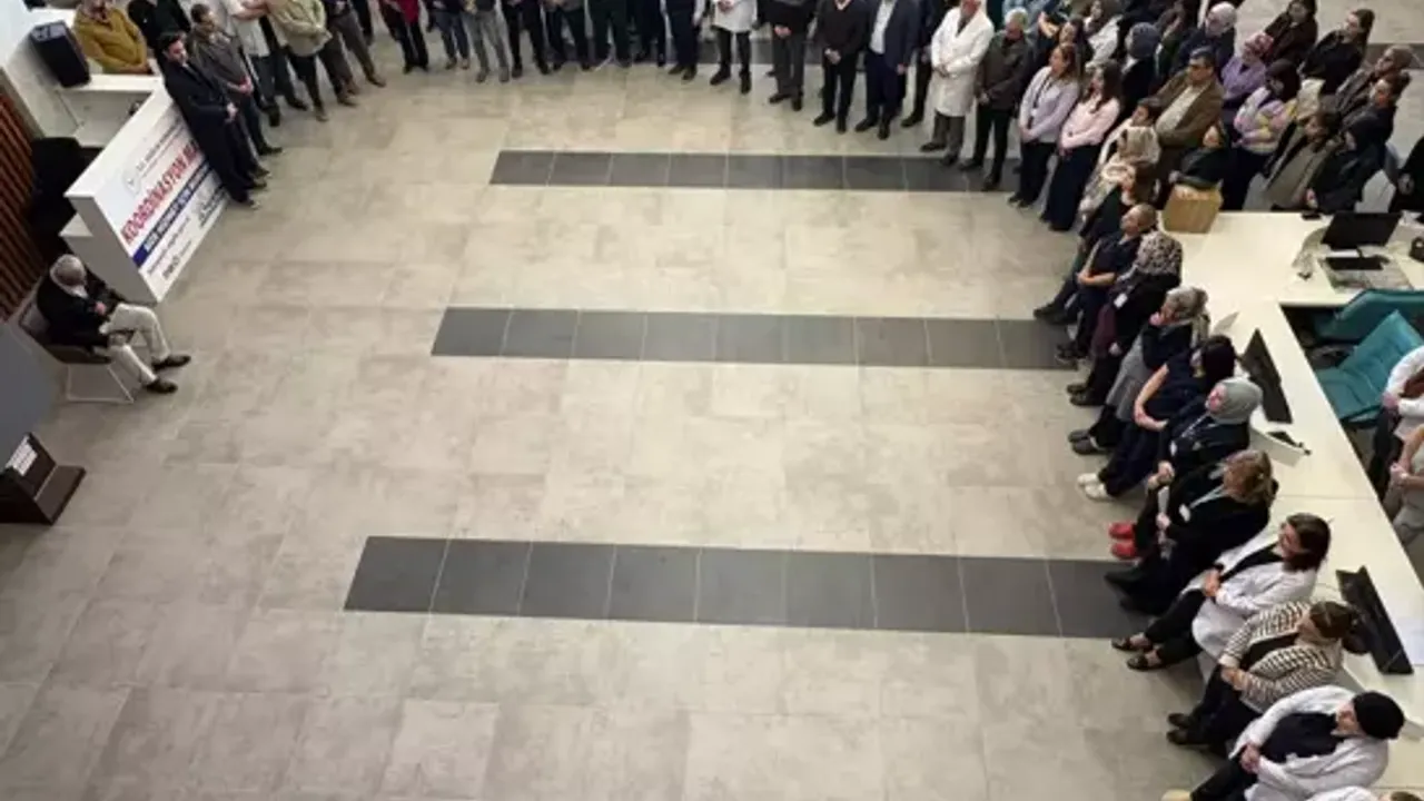 Hastane lobisinde gerçekleştirilen etkinlikte, depremde yaşamını yitiren sağlıkçılar ve tüm depremzedeler için dualar edildi.