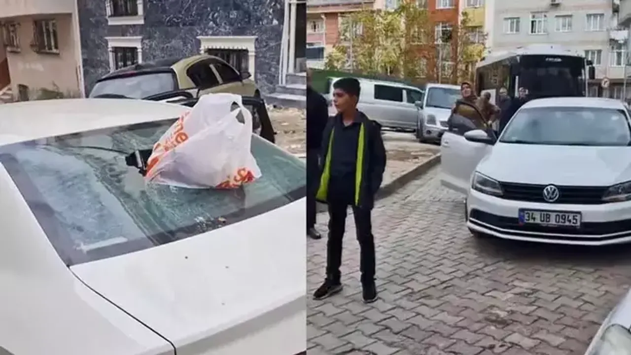 Atılan çöp, konvoydaki bir aracın arka camına isabet etti ve cam tamamen kırıldı. Arka koltukta oturan çocuklar büyük korku yaşadı, ancak yaralanan olmadı. Yaşananlar cep telefonu kamerasına yansıdı.