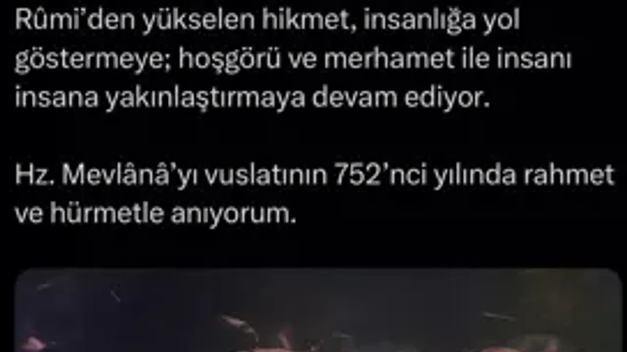 Emine Erdoğan, sosyal medya hesabından yaptığı paylaşımda, Şeb-i Arus’un sevgi ve irfanı merkeze alan evrensel bir çağrı olduğuna dikkat çekti. Paylaşımında, “Şeb-i Arus, kalbin dilinden konuşan bir çağrı, sevgiyi merkeze alan bir irfan mirasıdır. Asırlar geçse de Hz. Mevlana Celaleddin-i Rumi’den yükselen hikmet, insanlığa yol göstermeye, hoşgörü ve merhametle insanı insana yakınlaştırmaya devam ediyor. Hz. Mevlana’yı vuslatının 752’nci yılında rahmet ve hürmetle anıyorum” ifadelerine yer verdi.