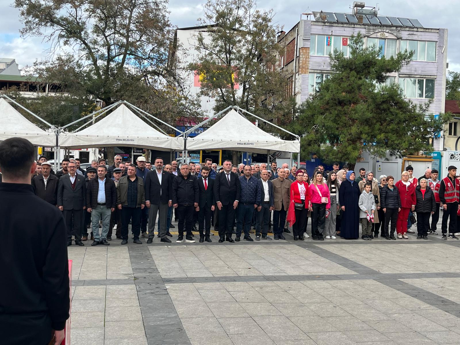 Saygı duruşu ve İstiklal Marşı’nın okunmasıyla başlayan törende, CHP Erbaa İlçe Başkanı Hüseyin Çakır partililer adına Atatürk Anıtı’na çelenk sundu. Çakır, yaptığı konuşmada Cumhuriyet’in sadece bir yönetim biçimi değil, halkın iradesinin simgesi olduğunu vurguladı.