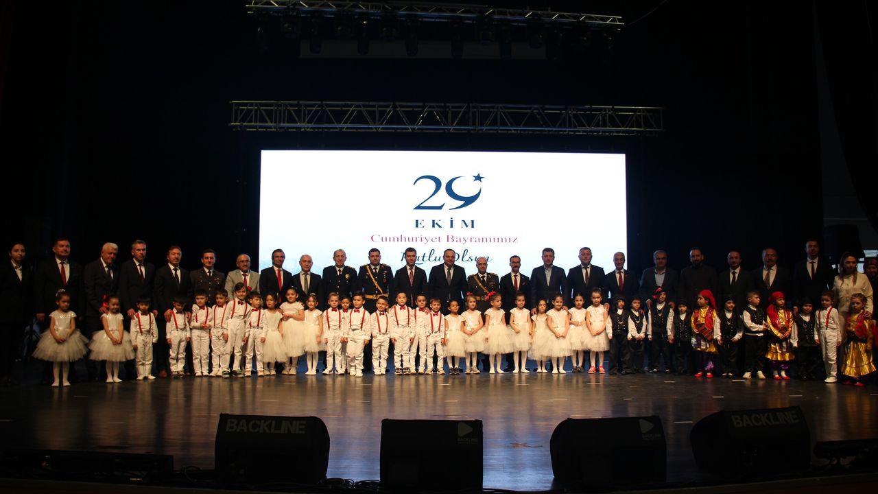 Yağışlı hava nedeniyle Cumhuriyet Meydanı’nda yapılması planlanan törenler, Ahmet Yenihan Kongre ve Kültür Merkezi’nde gerçekleştirildi. Saygı duruşu ve İstiklal Marşı’nın okunmasının ardından, Kaymakam Dr. Remzi Demir günün anlam ve önemini vurgulayan bir konuşma yaptı.