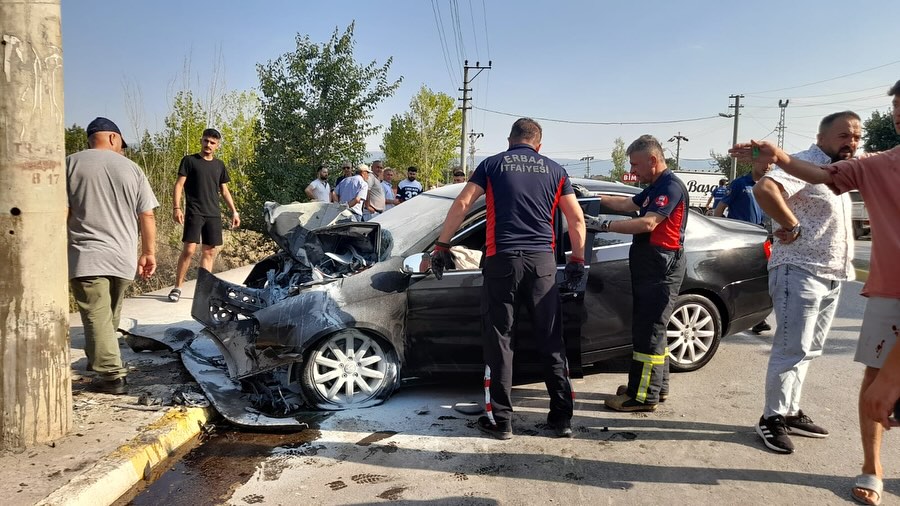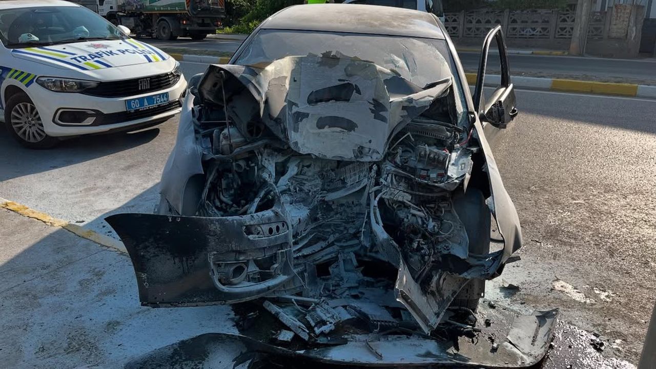 Çarpmanın etkisiyle otomobil adeta hurda yığınına dönerken, motor kısmında yangın çıkma ihtimaline karşı Erbaa Belediyesi itfaiye ekipleri olay yerine sevk edildi.