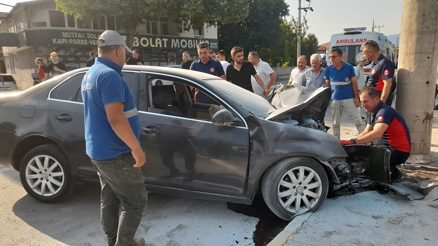 Edinilen bilgiye göre, U.K. idaresindeki 35 KG 7301 plakalı Volkswagen marka otomobil, Karayaka Bulvarı üzerinde sürücünün direksiyon hakimiyetini kaybetmesi sonucu yol kenarındaki beton elektrik direğine çarptı.