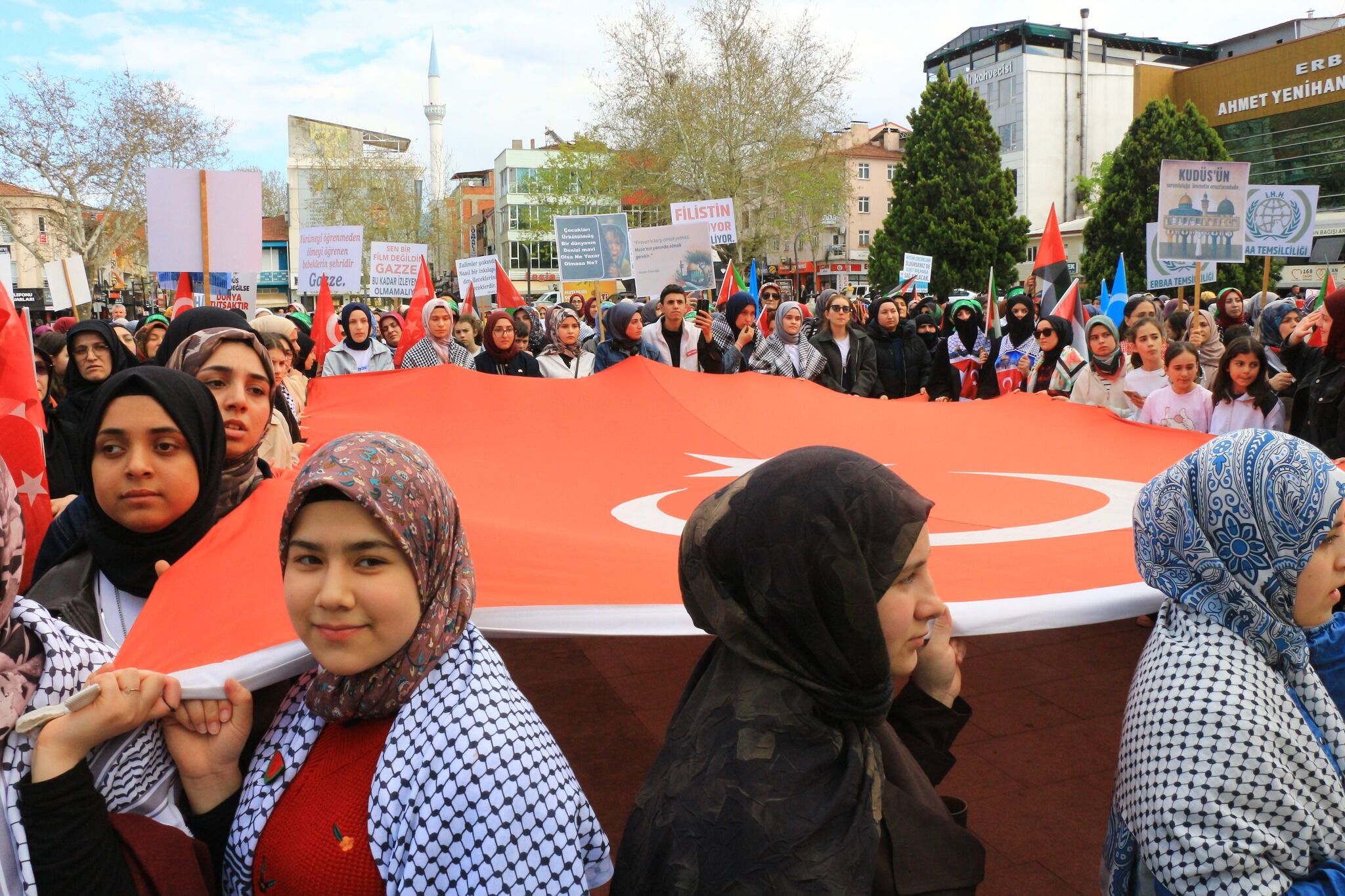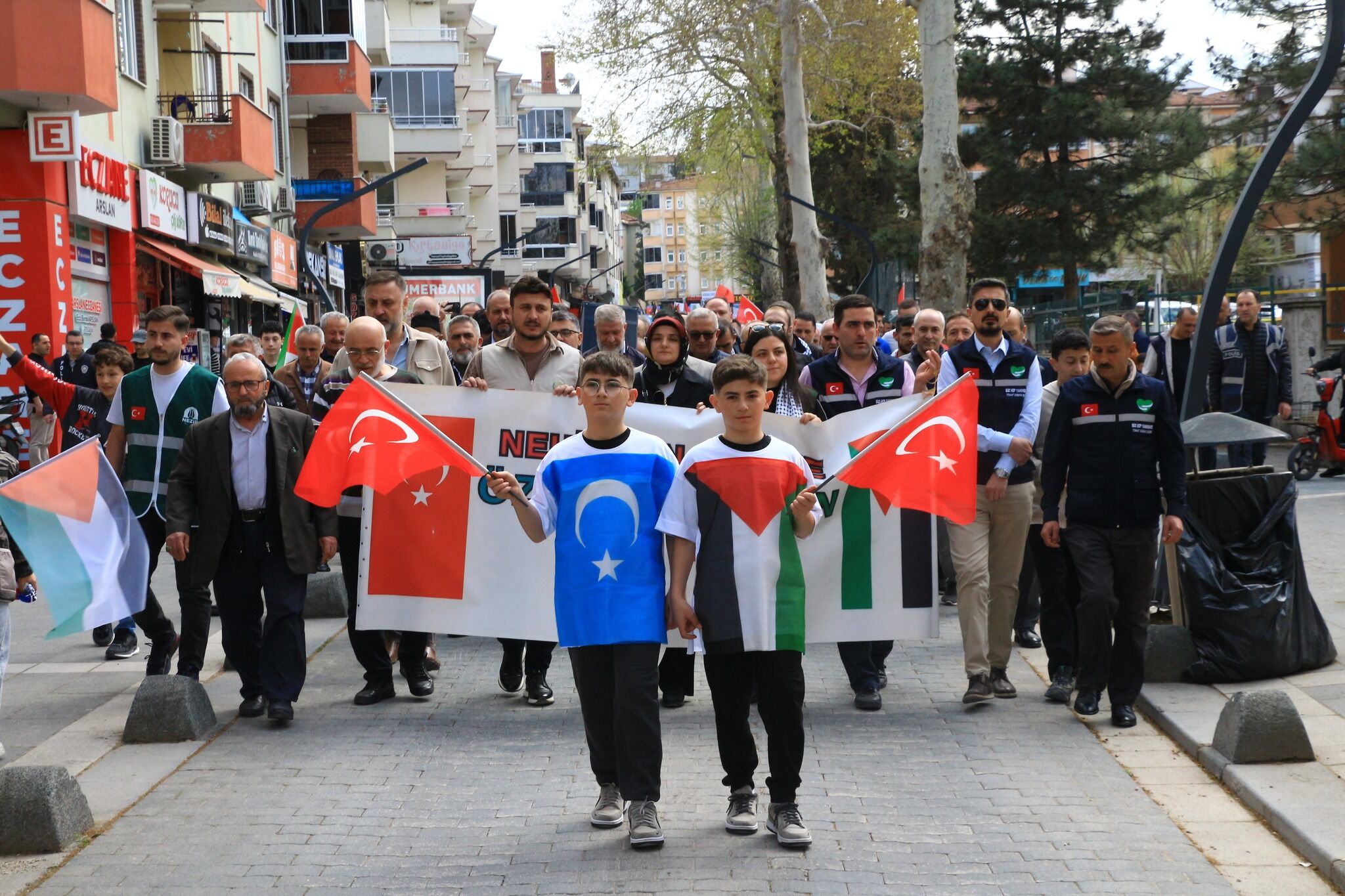 Düzenlenen yürüyüşe çok sayıda vatandaş katıldı. Erbaa`da sivil toplum örgütleri tarafından Filistin ve Doğu Türkistan’a destek yürüyüşü düzenlendi. 'Zulme Karşı Omuz Omuza' sloganıyla düzenlenen yürüyüşte çok sayıda vatandaş katıldı. Çamlık Korupark Millet Bahçesi’nden Cumhuriyet Meydanı'na yürüyen kalabalık ‘Nehirden Denize Özgür Filistin, 'Çocuklar Ölürken Sessiz Kalınmaz' sloganları attı.
