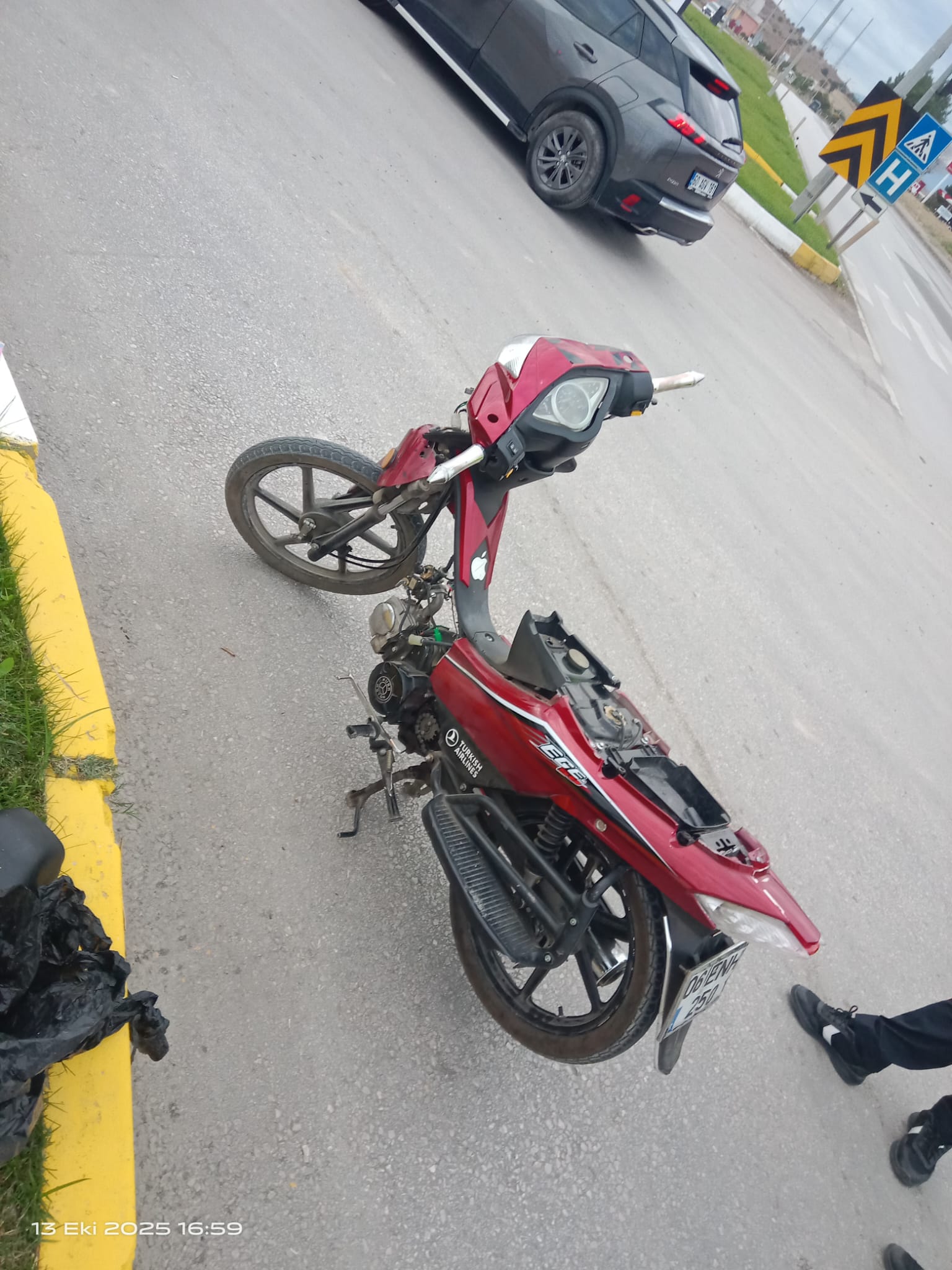 Görgü tanıklarının aktardığına göre, seyir halinde olan motosiklet sürücüsü, iddiaya göre kırmızı ışıkta durmayarak kavşaktan geçmekte olan bir otomobile çarptı. Çarpmanın etkisiyle motosiklet sürücüsü yola savrularak yaralandı.