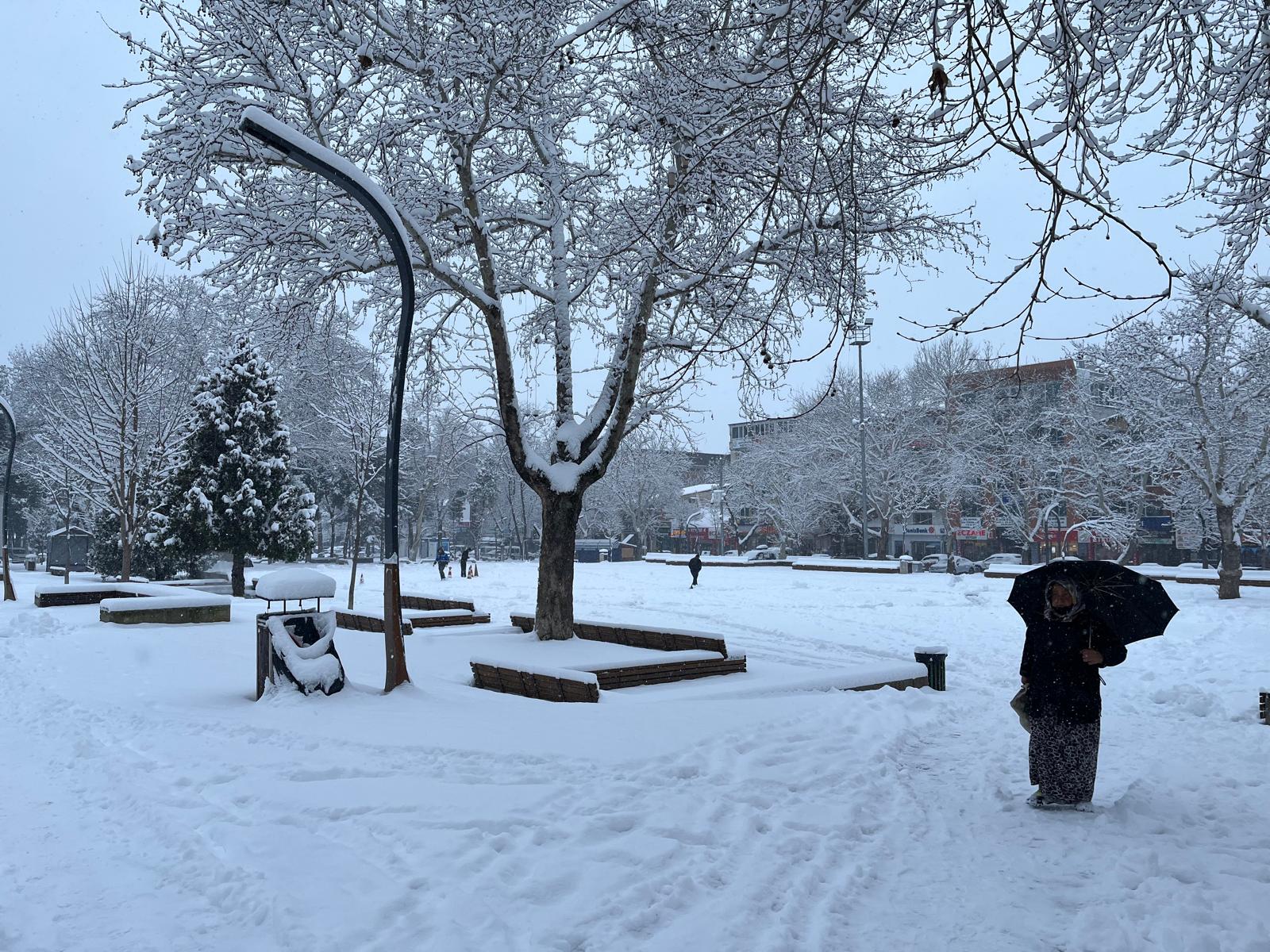 Erbaa’da dün gece saatlerinden itibaren etkili olan kar yağışı, ilerleyen saatlerde şiddetini artırdı. Kısa sürede tüm kenti kaplayan beyaz örtü, özellikle parklar ve yeşil alanlarda kartpostallık görüntüler oluşturdu. Sabah saatlerinde işe gitmek için uyanan vatandaşlar, dondurucu soğuk ve kar manzarasıyla karşılaştı.