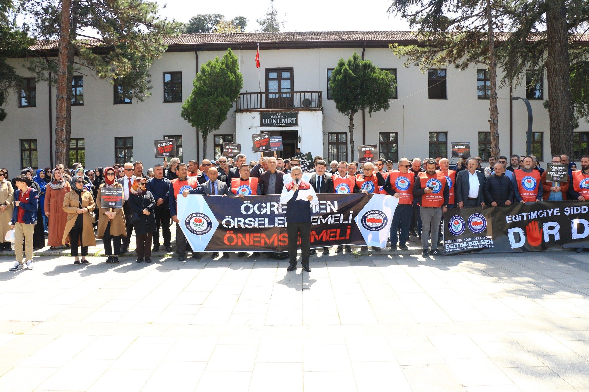 Siverek Ahmet Koyuncu Mesleki ve Teknik Anadolu Lisesi’nde eski bir öğrenci tarafından yapılan saldırıya Erbaa’daki öğretmenler tepki gösterdi. Cumhuriyet Meydanında toplanan öğretmenler ‘eğitimde şiddete hayır’ sloganları atarak basın açıklaması yaptı.