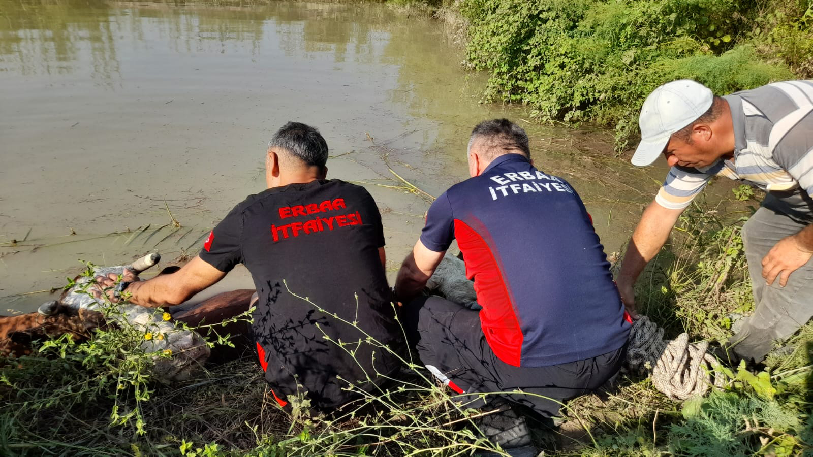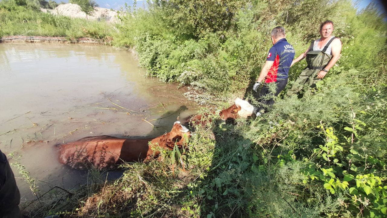 Olay Erbaa’ya bağlı Kelkit Mahallesi’nde Kelkit Çayı kenarında meydana geldi. Mustafa Yağcı’ya ait inekler, otlarken çay kenarındaki 2 ayrı gölete düştü. Hayvanlarını kendi imkanlarıyla çıkaramayan Yağcı, durumu Erbaa Belediyesi itfaiyesine bildirdi. Bölgeye sevk edilen ekipler, yakındaki bir işletmeye ait iş makinesinin desteğiyle, gölette mahsur kalan inekleri kurtardı. Yaklaşık bir saat süren çalışma sonunda sağ olarak çıkarılan hayvanlar, sahibine teslim edildi.