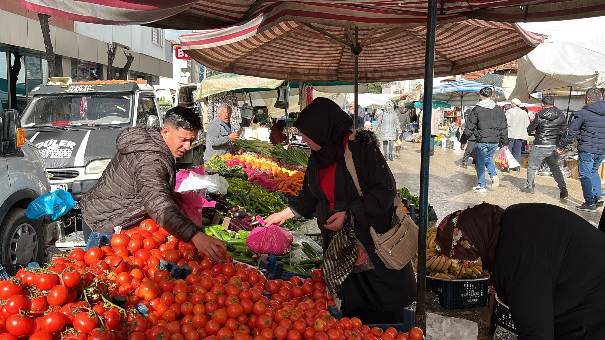 Erbaa Salı pazarında esnaflık yapan Semih Tütüncü, Ramazan ayıyla birlikte pazarda bolluk yaşandığını belirtti. Tütüncü, “Ramazan ayı geldi, bolluk geldi. Domates fiyatı 50 TL’ye kadar düştü. Fiyatlar geçtiğimiz haftaya göre yarı yarıya geriledi” dedi.