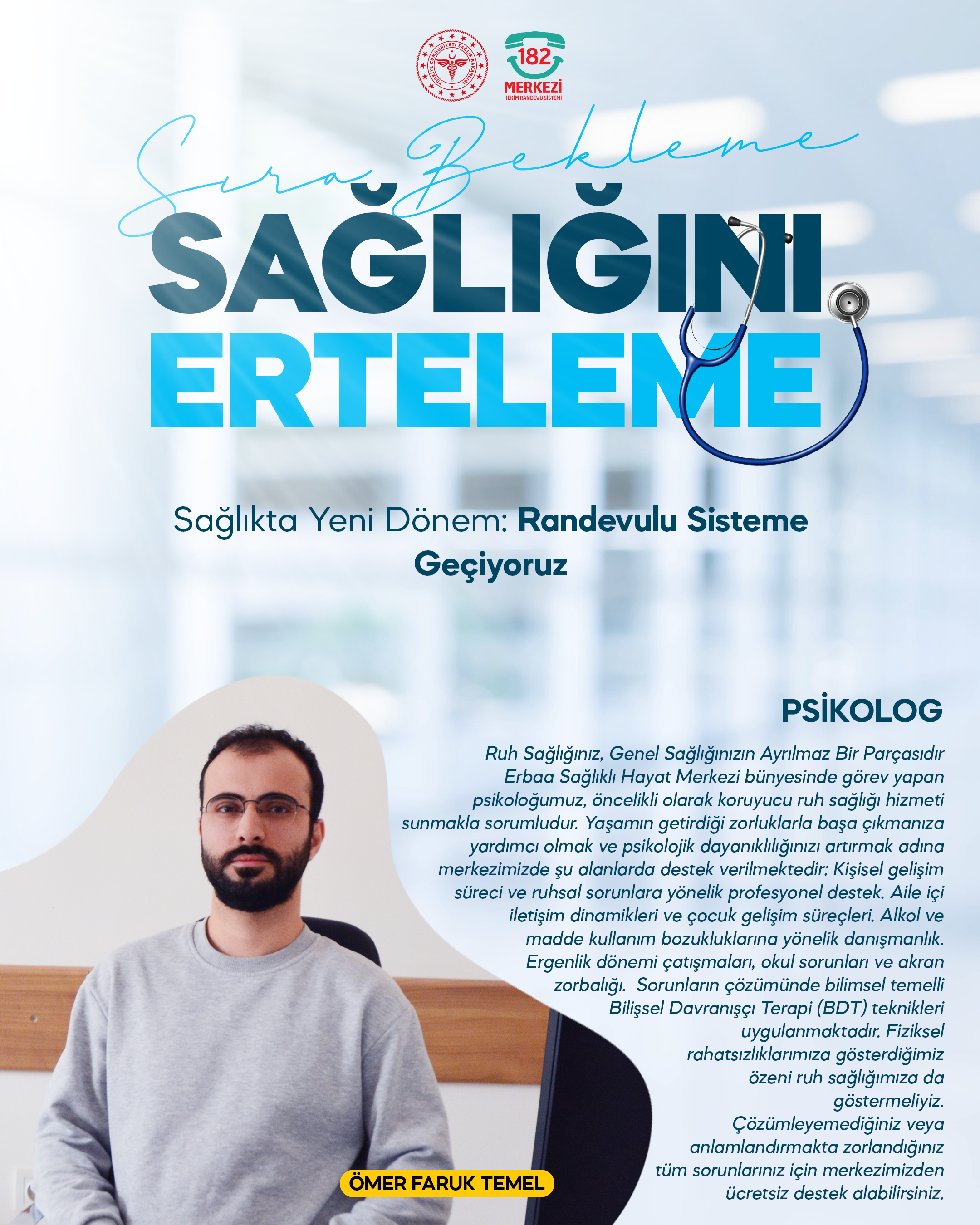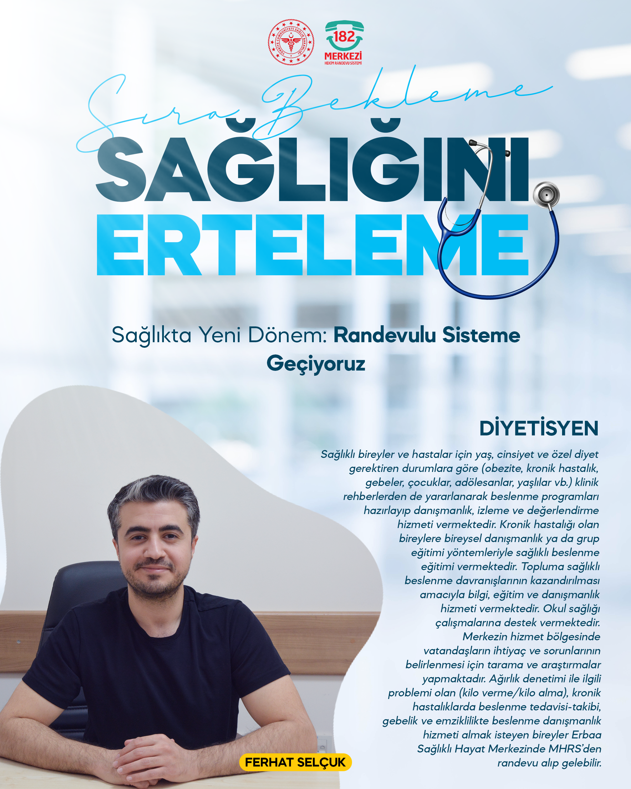 Erbaa İlçe Sağlık Müdürlüğü tarafından yapılan açıklamaya göre, yeni uygulamayla birlikte vatandaşlar; MHRS mobil uygulaması veya internet üzerinden “Sağlıklı Hayat Merkezi” seçeneğini kullanarak kolayca randevu oluşturabilecek. Böylece hizmetlere erişimde daha planlı ve düzenli bir sistem oluşturulması hedefleniyor.