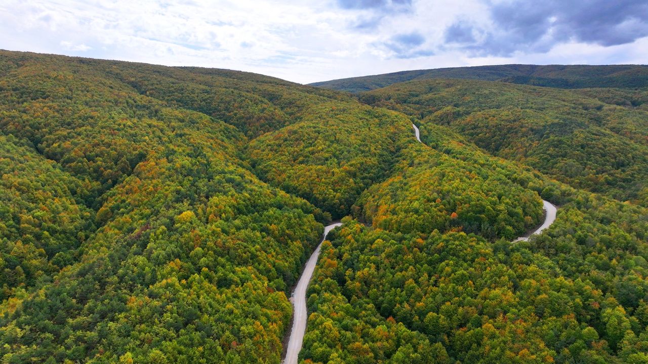 Kozlu köyünden başlayan, Çerkezfındıcak köyü üzerinden Turhal ilçesine kadar uzanan dağ yolu, özellikle sonbaharda doğayla iç içe bir yolculuk sunuyor. Yayla çevresinde bulunan ağaçlar ve doğal bitki örtüsü, havadan drone ile görüntülendi. Ortaya çıkan görüntüler, bölgenin doğal güzelliklerini bir kez daha gözler önüne serdi.