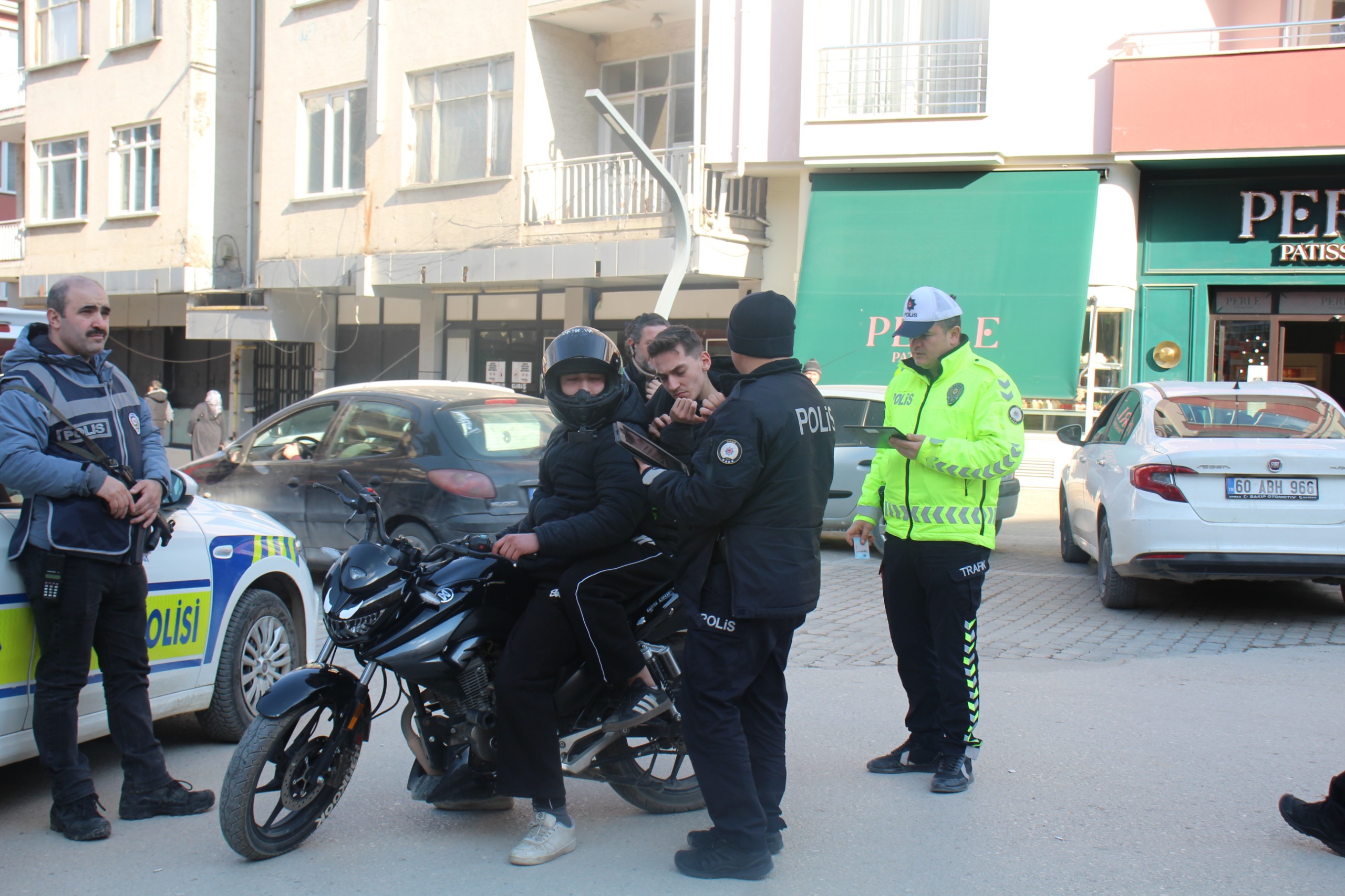 Erbaa İlçe Emniyet Müdürlüğü’ne bağlı asayiş ve trafik ekipleri, ilçenin ticaret ve yaya trafiği açısından en işlek caddelerinden biri olan Cumhuriyet Mahallesi’ndeki stratejik noktalarda kontrol noktası oluşturdu. Sermet Durmuşoğlu Caddesi, Dr. Ziya Durmuş Caddesi ve Atatürk Caddesi’nin birleştiği dev kavşakta 14.00 ile 15.30 saatleri arasında gerçekleştirilen uygulamada adeta kuş uçurtulmadı.