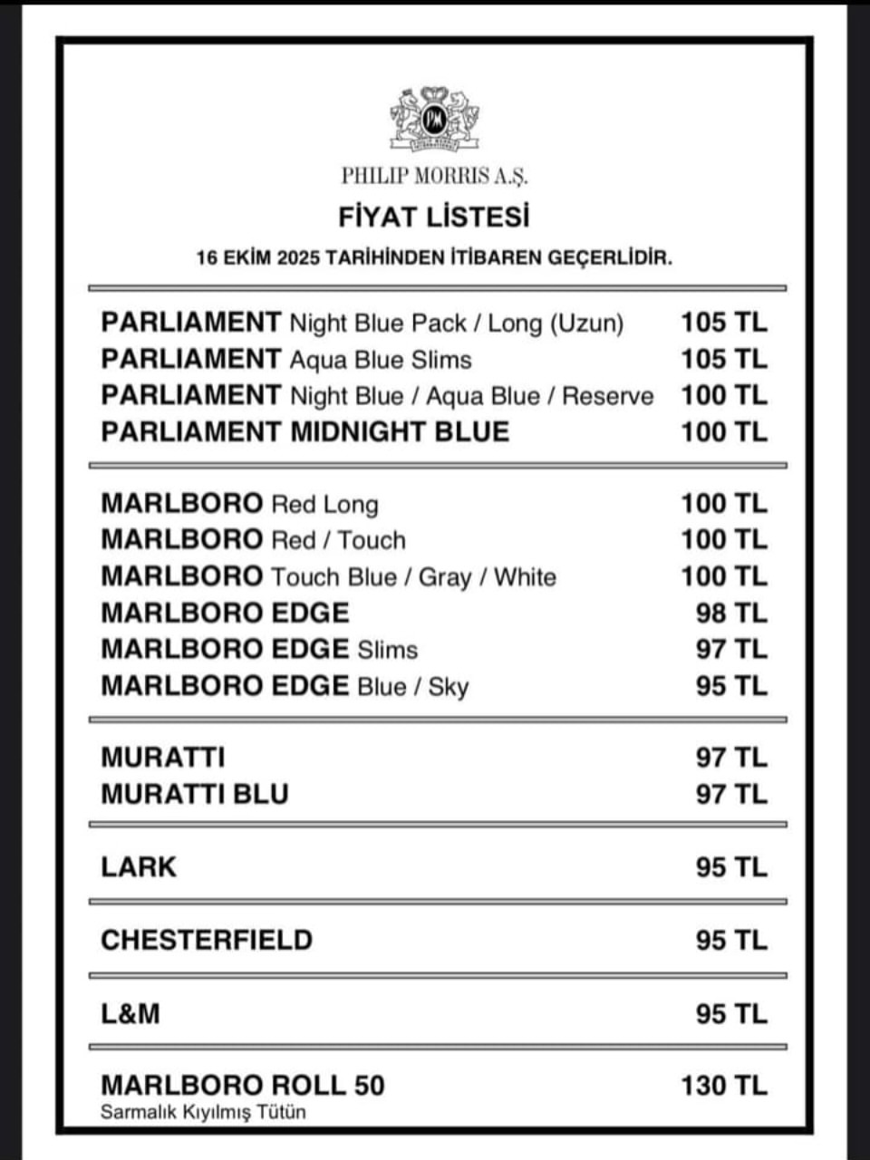 Ağustos ayında yapılan fiyat güncellemesinin ardından, Ekim ayında da sigaraya yeni bir zam dalgası geldi. Philip Morris grubu, paket başına 5 TL'lik bir artışa gitti.