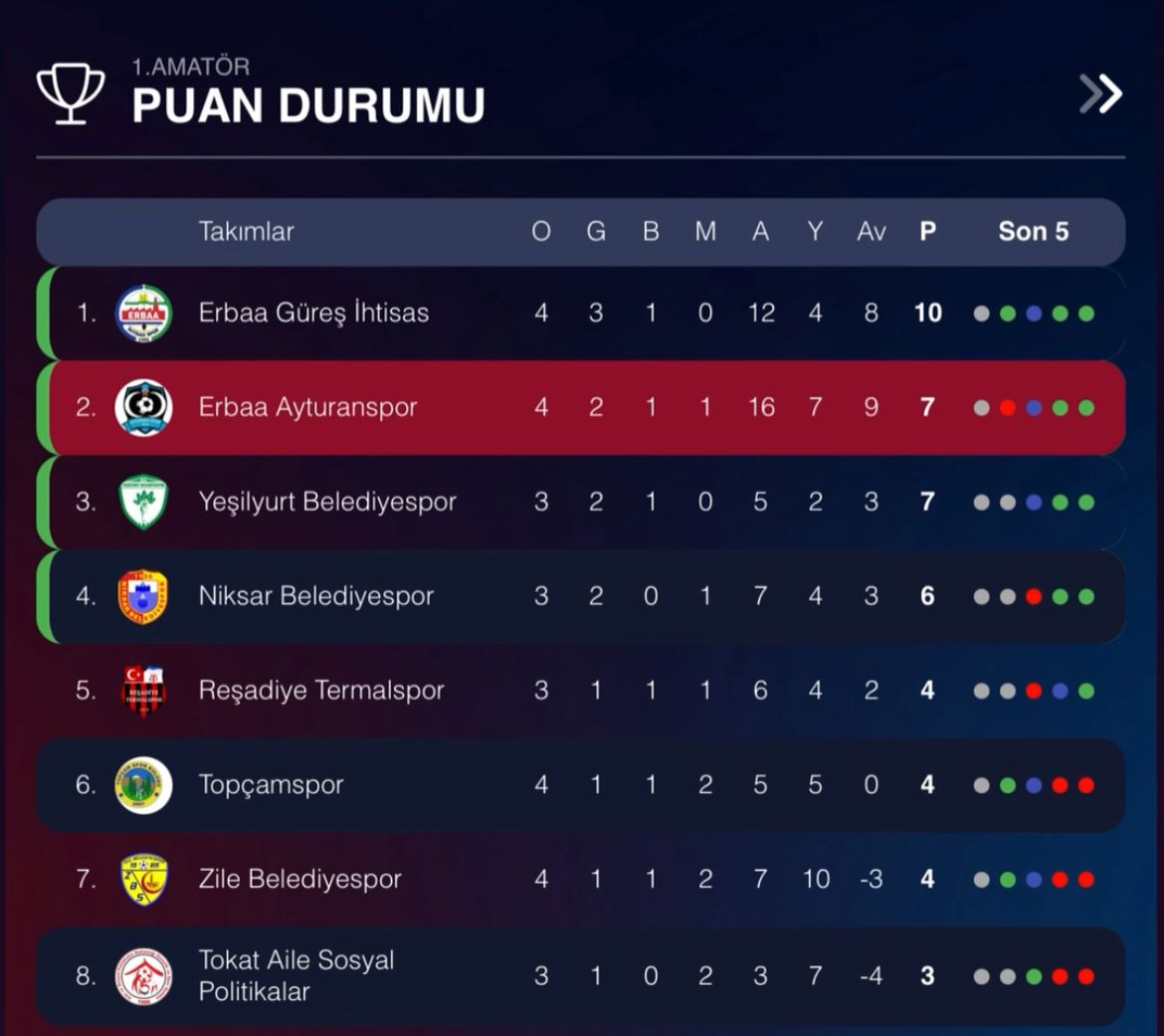 Rakibinin oyun kurmasına izin vermeyen Erbaa ekibi, hızlı hücumlarla etkili olarak sahadan 3–0’lık net bir galibiyetle ayrıldı. Bu sonuçla Ayturanspor puanını 7’ye yükselterek haftayı ikinci sırada tamamladı.