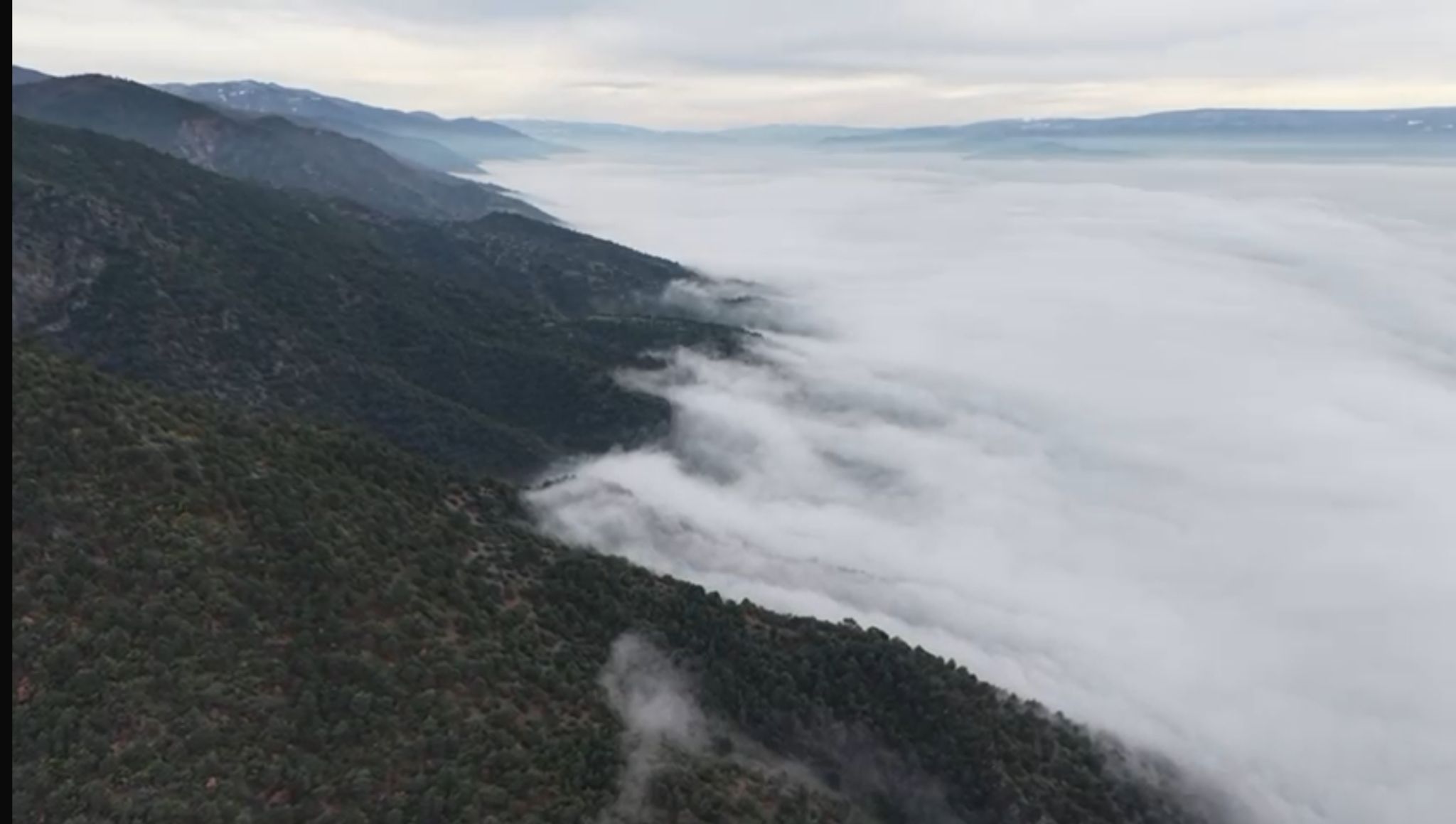 Sis tabakası, şehri beyaz bir örtüyle kaplayarak, manzarayı tamamen farklı bir boyuta taşıdı ve bu eşsiz görüntüler, fotoğrafçılar tarafından kayda alındı.