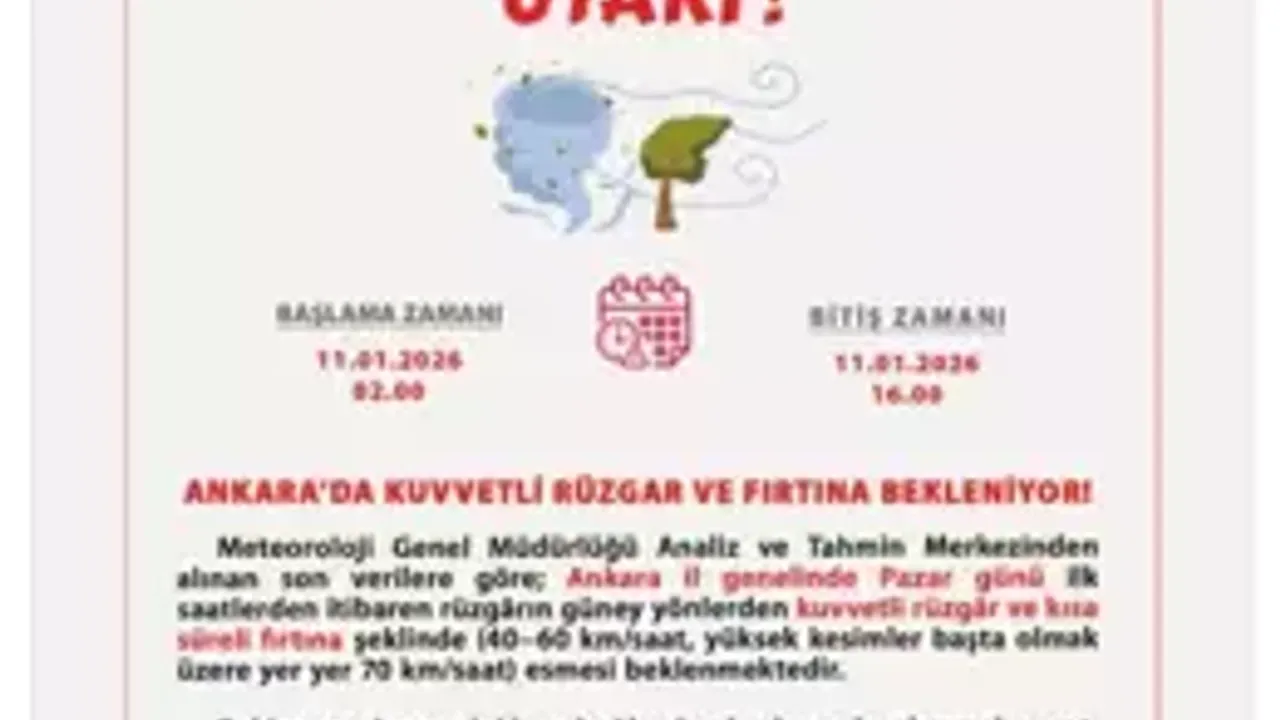 Valiliğin sosyal medya hesapları üzerinden paylaşılan uyarı metnine göre, pazar gününün ilk saatlerinden itibaren rüzgarın güney yönlerden kuvvetli şekilde esmesi bekleniyor. Rüzgarın hızının şehir merkezinde 40 ile 60 kilometre arasında değişeceği, Ankara’nın rakımı yüksek ilçelerinde ve açık alanlarda ise bu hızın kısa süreli fırtına etkisiyle 70 kilometreye kadar ulaşacağı tahmin ediliyor. Yapılan analizler, rüzgarın özellikle günün erken saatlerinden itibaren etkisini artırarak ulaşım ve günlük faaliyetler üzerinde baskı kuracağını gösteriyor.