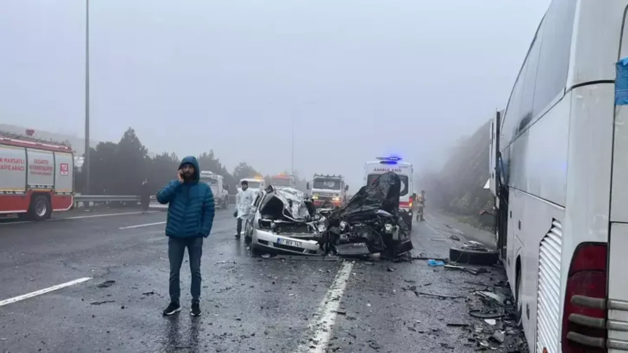 Otoyolda 2 TIR, 1 yolcu otobüsü ve 7 otomobilin karıştığı kaza sonucunda 2 kişi hayatını kaybederken, 10 kişi de yaralandı. Yaralılardan birinin durumunun ağır olduğu bildirildi.
