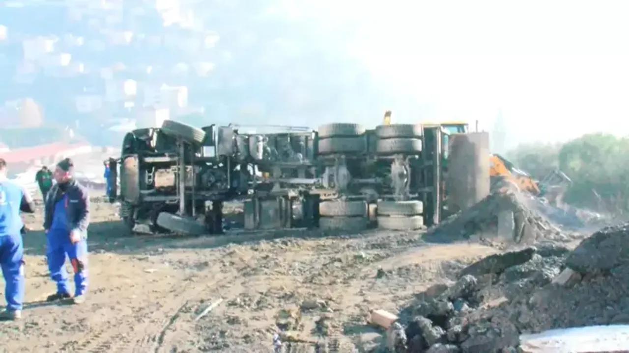 Kaza, sabah saat 09.30 sıralarında meydana geldi. 34 TM 2057 plakalı hafriyat kamyonu boş araziye moloz dökerken devrildi. İhbar üzerine olay yerine itfaiye, polis ve sağlık ekipleri sevk edildi.
