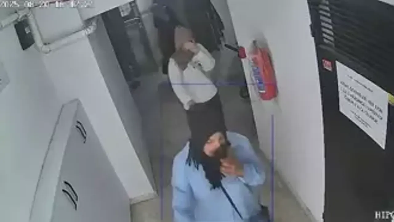 Merdivenlerden üst kata çıkan kadınlar, kapısını tıklattıkları daireden yanıt alamayınca kapıyı açarak içeri girdi. Kadınlardan biri mutfak ve oturma odasına yönelirken, diğer ikisi kapıda gözcülük yaptı. Ancak içerideki kadının panikle çıkmasına neden olan bir uyarı üzerine üçü de binadan hızla uzaklaştı.