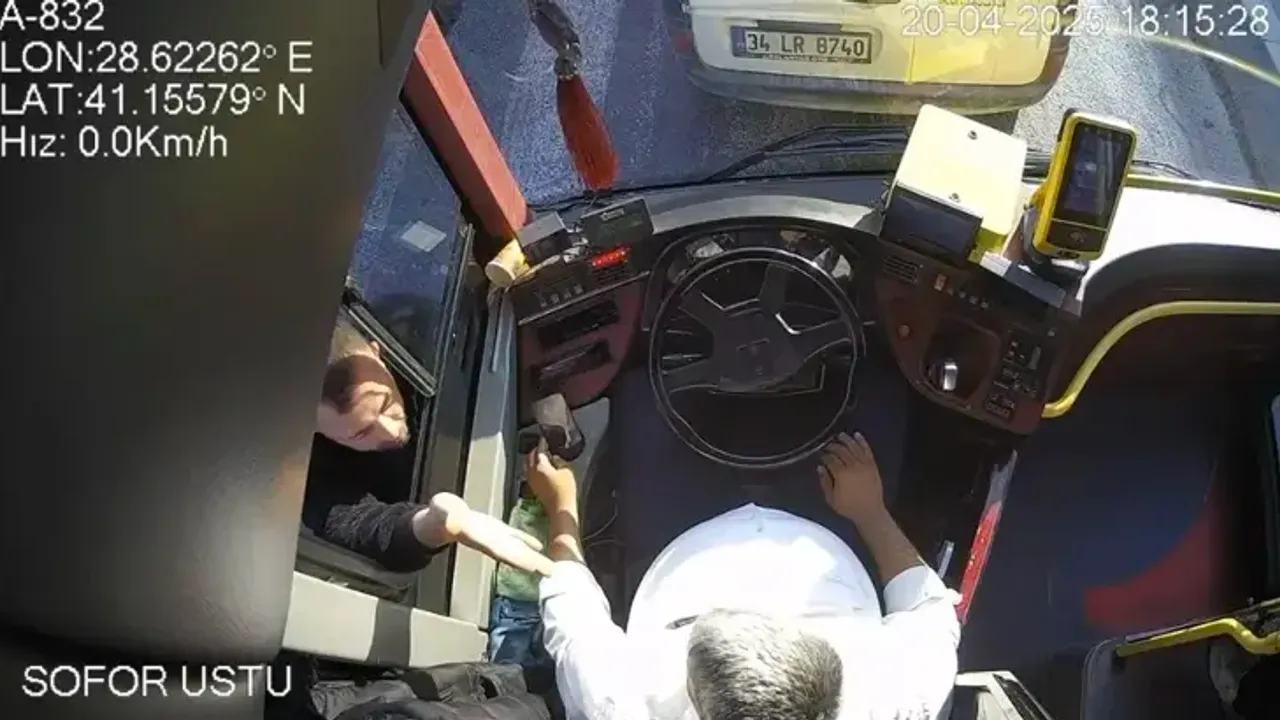 Olay, 20 Nisan’da akşam saatlerinde Hadımköy-Haramidere güzergahı üzerinde sefer yapan bir İETT otobüsünde meydana geldi. Otobüs şoförüyle tartışan şüpheliler, otobüsü durdurarak aracın camlarına zarar verdi. O anlar, otobüsün içindeki güvenlik kameraları tarafından kaydedildi.