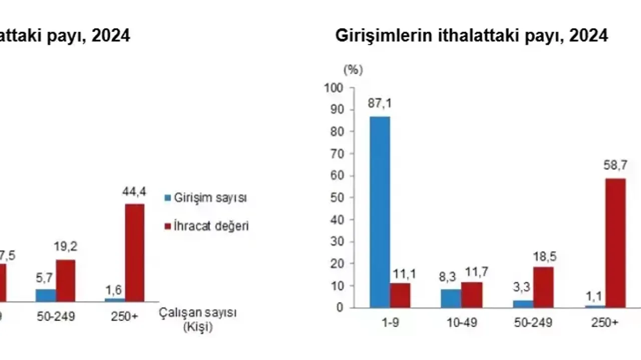 İthalatta ise tablo daha da belirginleşti. Büyük ölçekli girişimler, toplam ithalatın yüzde 58,7’sini gerçekleştirdi. Bu girişimler, ithalat yapan tüm girişimlerin yalnızca yüzde 1,1’ini oluşturdu.