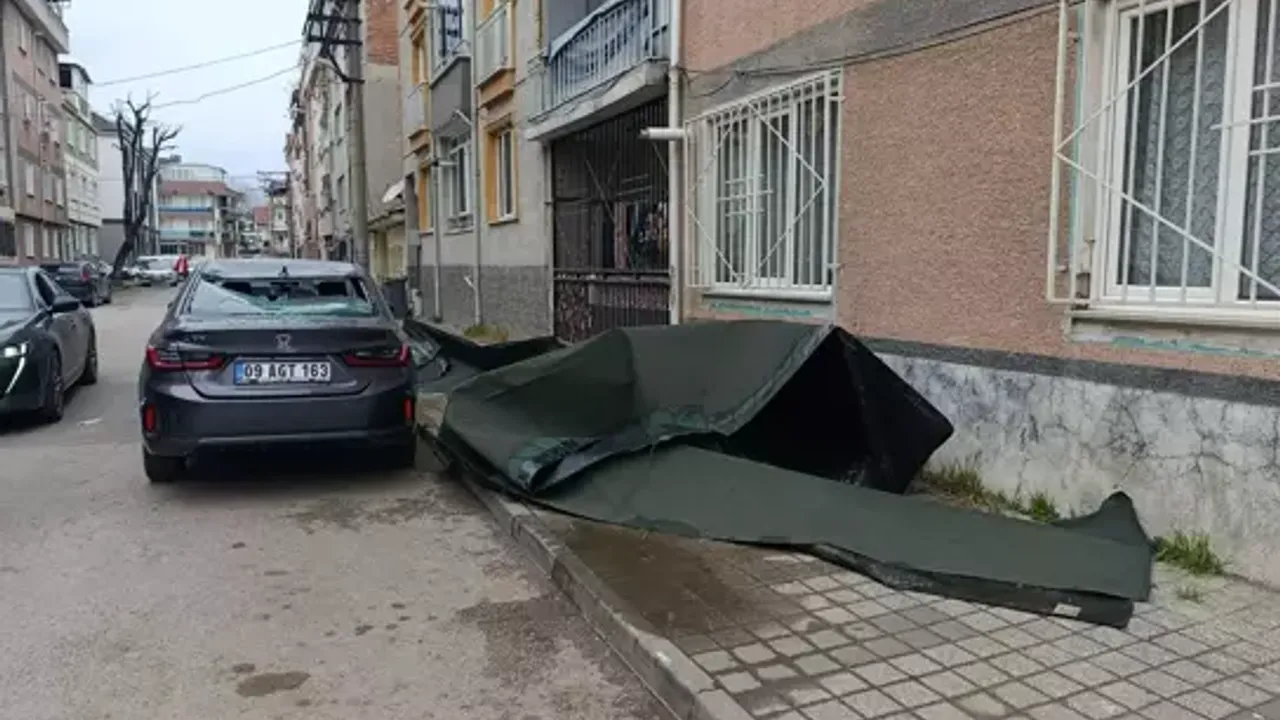 Olay, dün akşam saatlerinden itibaren kent genelinde etkili olan lodos nedeniyle günlük yaşamı olumsuz etkilerken meydana geldi. Apartmanın çatı kaplamasında kullanılan şıngıl, rüzgarın şiddetiyle uçtu ve 09 AGT 163 plakalı otomobilin üzerine düşerek araçta maddi hasara yol açtı.