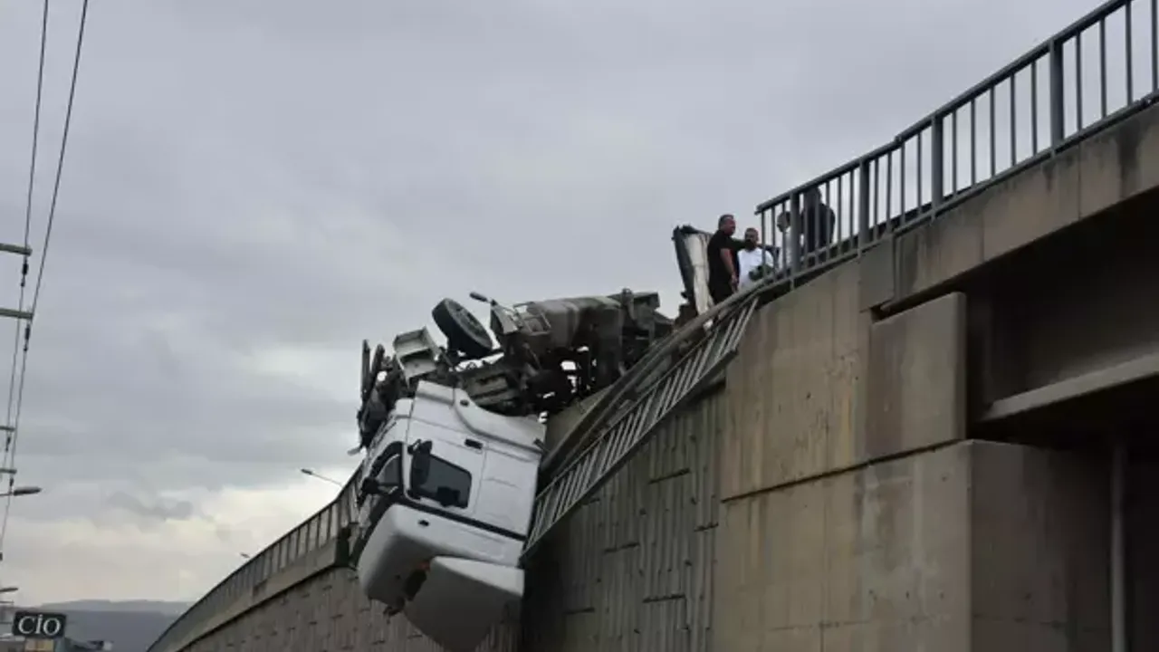 Kaza, sabah saat 10.00 civarında Ankara Caddesi üzerindeki 4 Sanayi Üst Viyadüğü’nde meydana geldi. Bornova’dan Alsancak Limanı yönüne ilerleyen 06 FGT 332 plakalı TIR, yağmur nedeniyle kayganlaşan zeminde sürücüsünün direksiyon hakimiyetini kaybetmesi sonucu devrildi. TIR’ın kupası, viyadükten aşağı sarkarak tehlikeli bir şekilde asılı kaldı.
