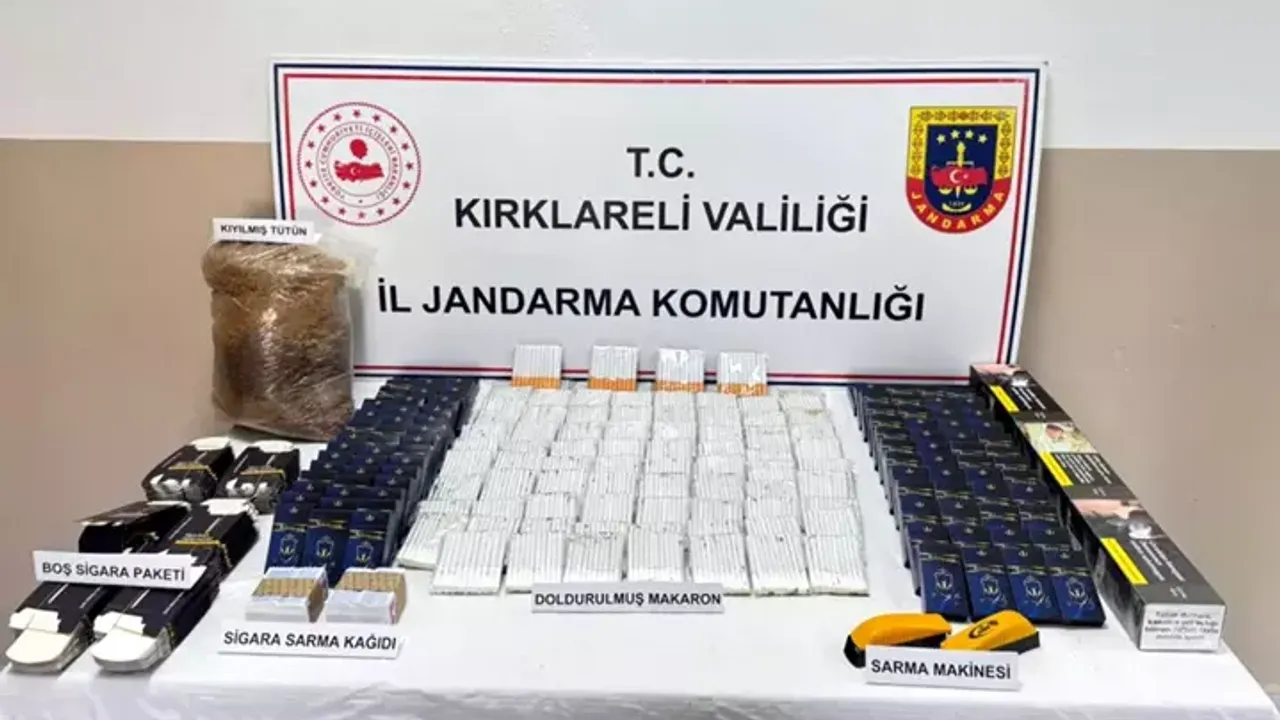 Olayla ilgili 2 şüpheli gözaltına alındı. İl Jandarma Komutanlığı ekipleri, kaçakçılık ve organize suçlarla mücadele çalışmaları kapsamında belirlenen adreslere eş zamanlı operasyon düzenledi. Demirköy ve Kofçaz’daki adreslerde yapılan aramalarda; 3 bin 620 dolu makaron, 600 boş makaron, 300 boş sigara paketi, 120 sigara sarma kağıdı, 3 kilo açık tütün ve 2 tütün sarma makinesi ele geçirildi.