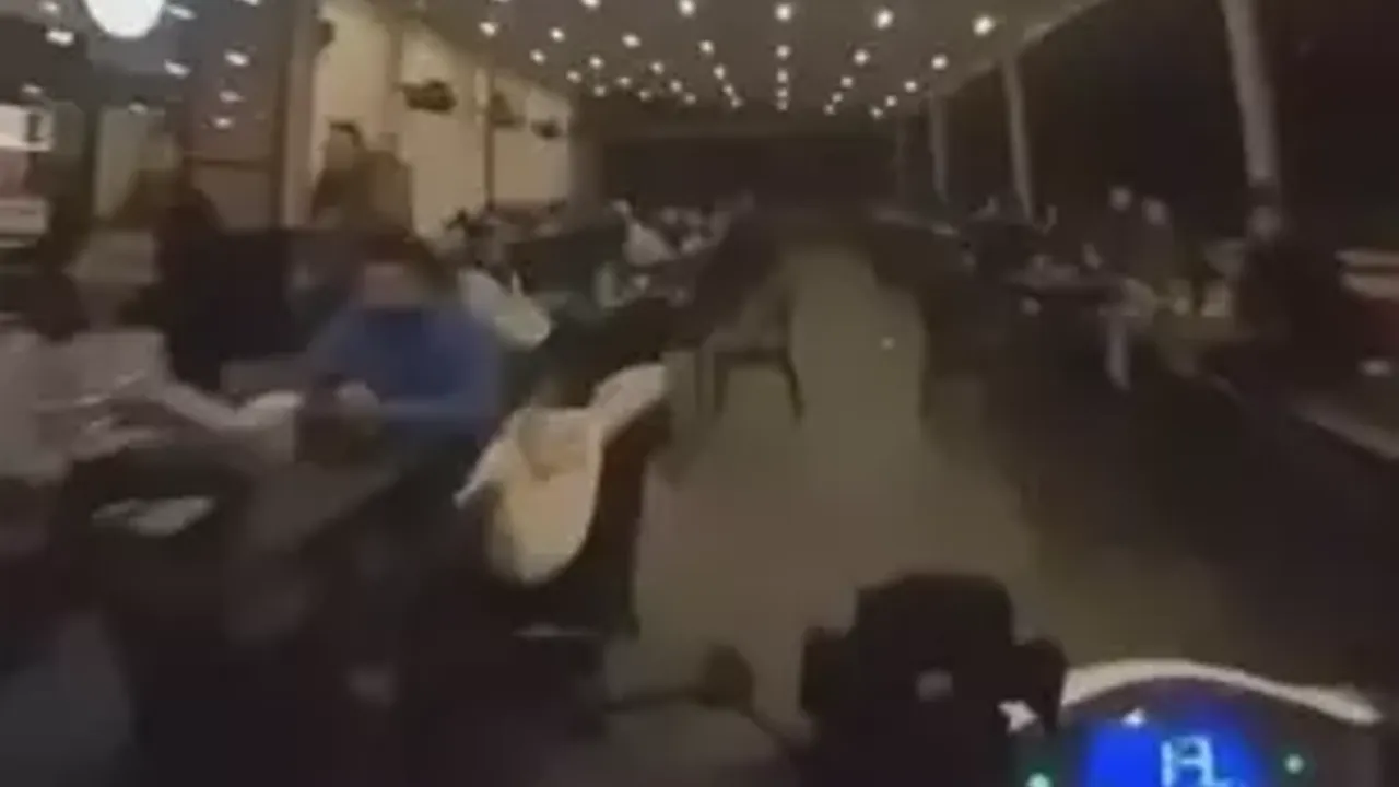 Edinilen bilgilere göre, motosiklet sürücüsü alışveriş merkezinin önündeki kafeye girerek masaların arasından geçmeye başladı. Bu sırada, kafedeki müşteriler büyük panik yaşadı. Sürücünün davranışı güvenlik kameralarına ve kendi kask kamerasına yansıdı. Görüntülerde sürücünün, “Selam sana imparator, arkadaşlar ben geçebilir miyim? Çok teşekkür ediyorum. Afiyet olsun, hayırlı günler” şeklinde bağırdığı duyuluyor.