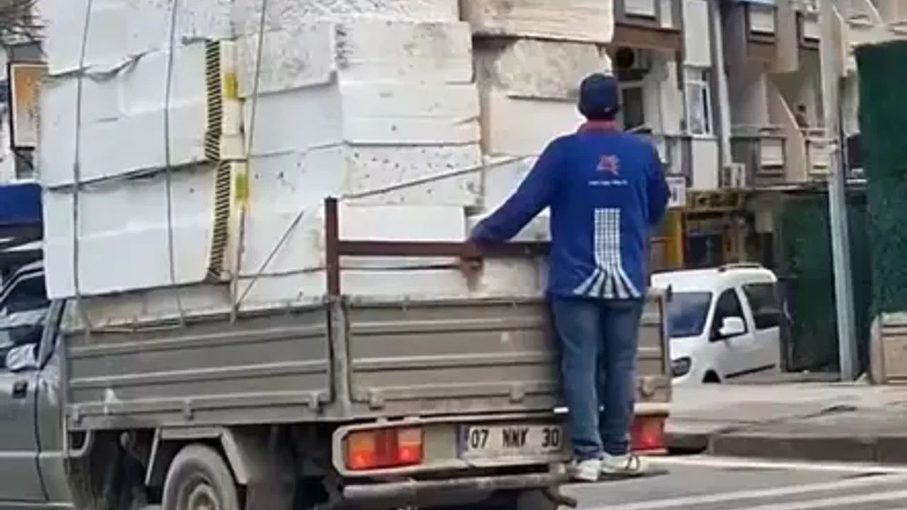 Olay, Tosmur Mahallesi’nde meydana geldi. İnşaat malzemesi yüklü bir kamyonetin arka kısmına tutunarak seyahat eden bir kişi, hem kendi canını hem de trafikteki diğer sürücülerin güvenliğini riske attı.