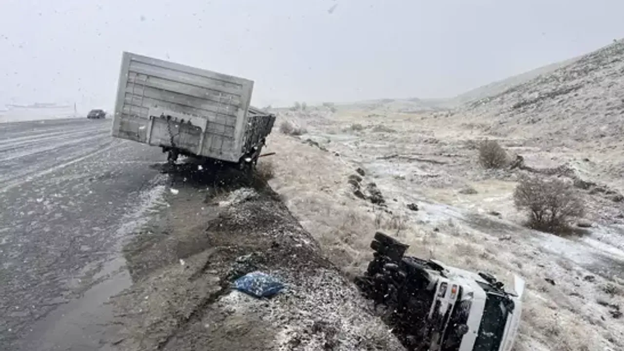 Erkenek Mahallesi Çamurlu mevkiinde bir TIR, sürücüsünün direksiyon hakimiyetini kaybetmesi sonucu şarampole devrildi.