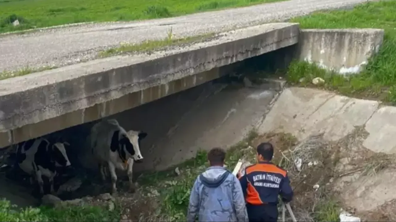 Detaylı inceleme ve arama faaliyetleri sonucunda kayıp hayvanlar, kayboldukları noktadan yaklaşık 2 kilometre mesafede bulunan bir menfezin içinde bulundu. Oldukça dar bir alanda sıkıştıkları ve uzun süre burada kaldıkları anlaşılan ineklerin bitkin düştüğü gözlemlendi. Bunun üzerine ekipler, hayvanları bulundukları yerden zarar vermeden çıkarmak için dikkatli bir kurtarma operasyonu planladı.