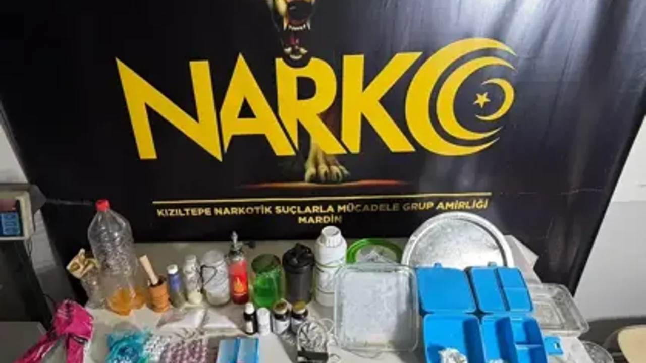 İl Emniyet Müdürlüğü’nden yapılan açıklamaya göre, her iki ilçede uyuşturucu ile mücadele kapsamında eş zamanlı çalışmalar gerçekleştirildi. Kızıltepe ilçesinde belirlenen bir adrese düzenlenen operasyonda detaylı arama yapıldı. Yapılan incelemelerde 2 kilo 600 gram uyuşturucu üretiminde kullanılan kimyasal sıvı, 156 gram metamfetamin, 28 gram katkı maddesi, 69 adet sentetik ecza hap, bir hassas terazi ve uyuşturucu imalatında kullanıldığı değerlendirilen çok sayıda ekipman ele geçirildi.